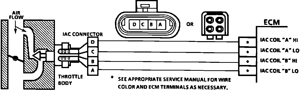 ^ IAC Valve Electrical Connections IAC valve connections should be carefully checked for proper contact.