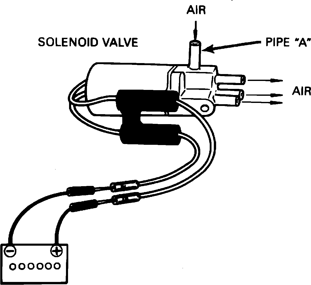 3. Apply voltage to valve. Ensure valve opens and air blows through the three hoses. Switch off voltage to valve, and ensure valve is closed. If valve does not operate as specified, replace valve.