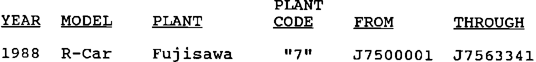 Involved are certain 1988 Chevrolet Spectrum model vehicles with 1.5L engines (excluding California vehicles) within the VIN breakpoints: