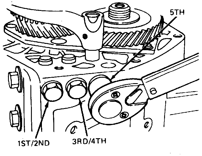 3. Remove 1st, 2nd, 3rd, 4th, reverse and 5th detent spring retaining bolts, detent springs, detent balls and detents.