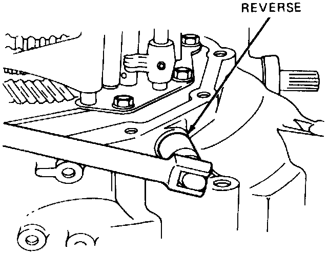 11. Remove reverse shift bracket and three interlock pins.