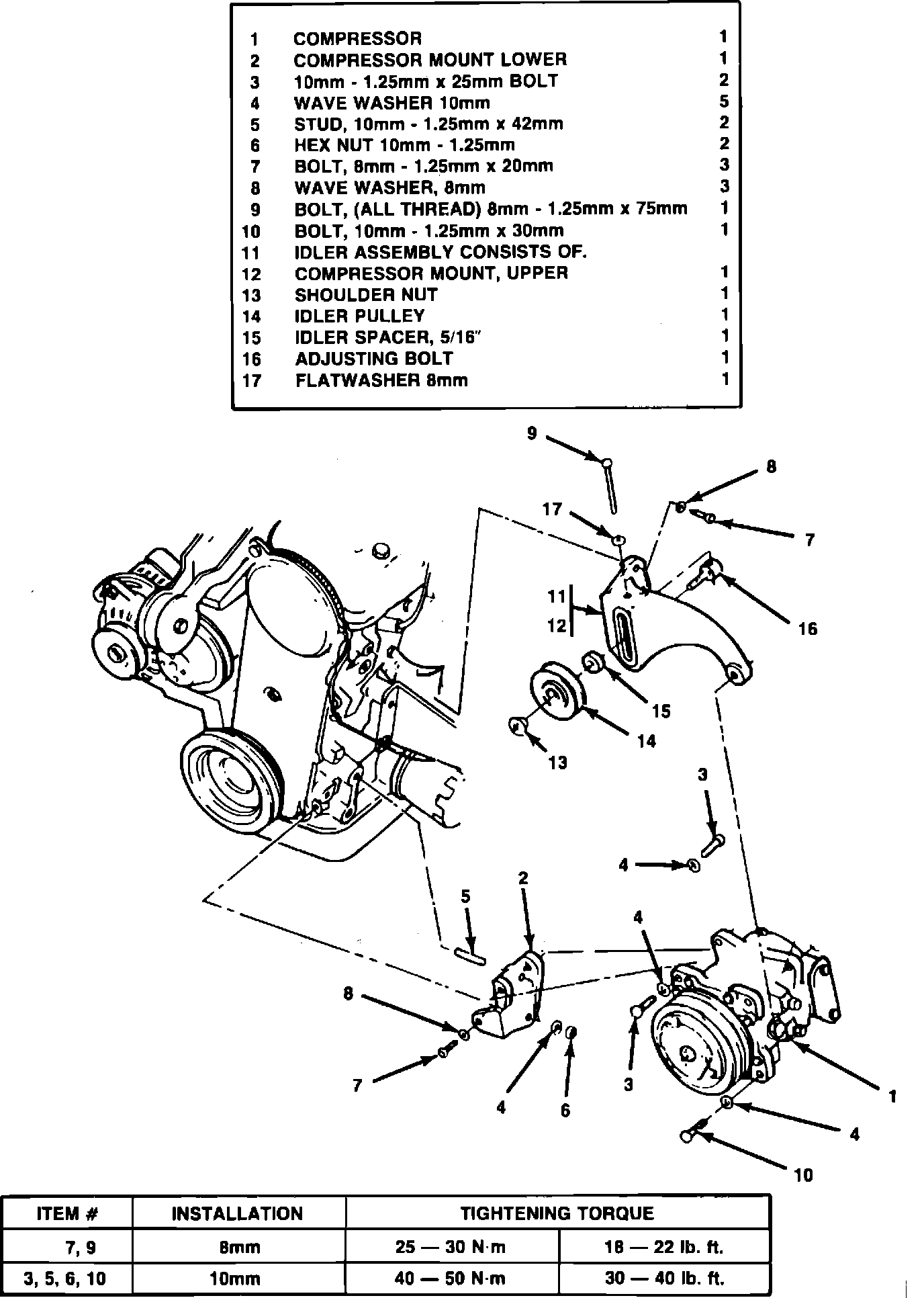 A/C COMPRESSOR MOUNTING BRACKET AND COMPRESSOR ASSEMBLY INSTALLATION PROCEDURES: