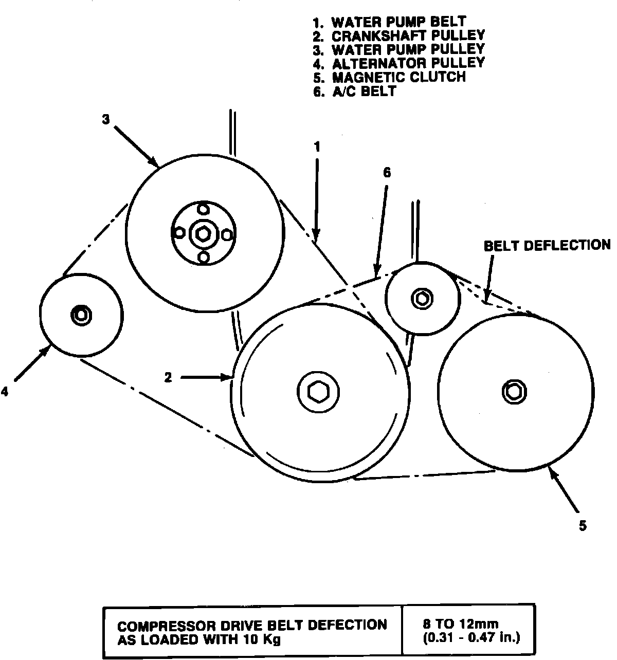 Install compressor drive belt around crank shaft pulley. Compressor clutch and idler pulley. Adjust belt to proper tension and torque idler pulley shoulder nut to 40 ft.lbs. See Figure 2.
