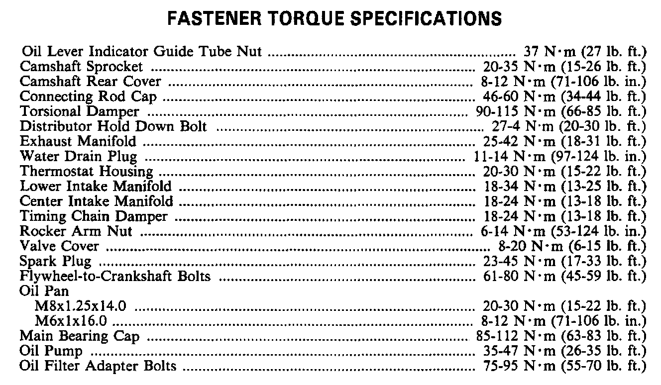 Torque Specifications: