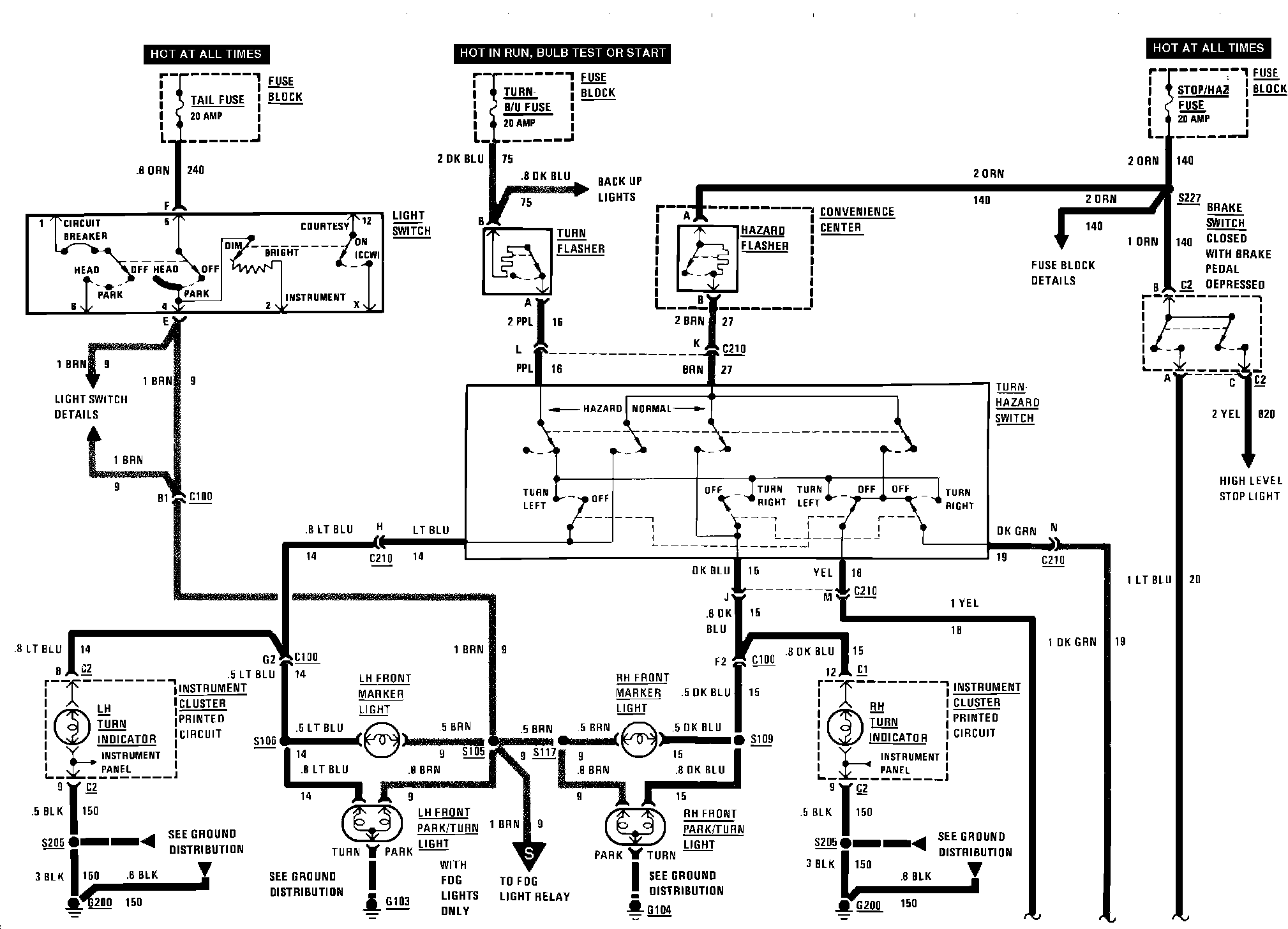 Exterior Lamps (Front Marker, Hazard, Park, Stop & Turn):