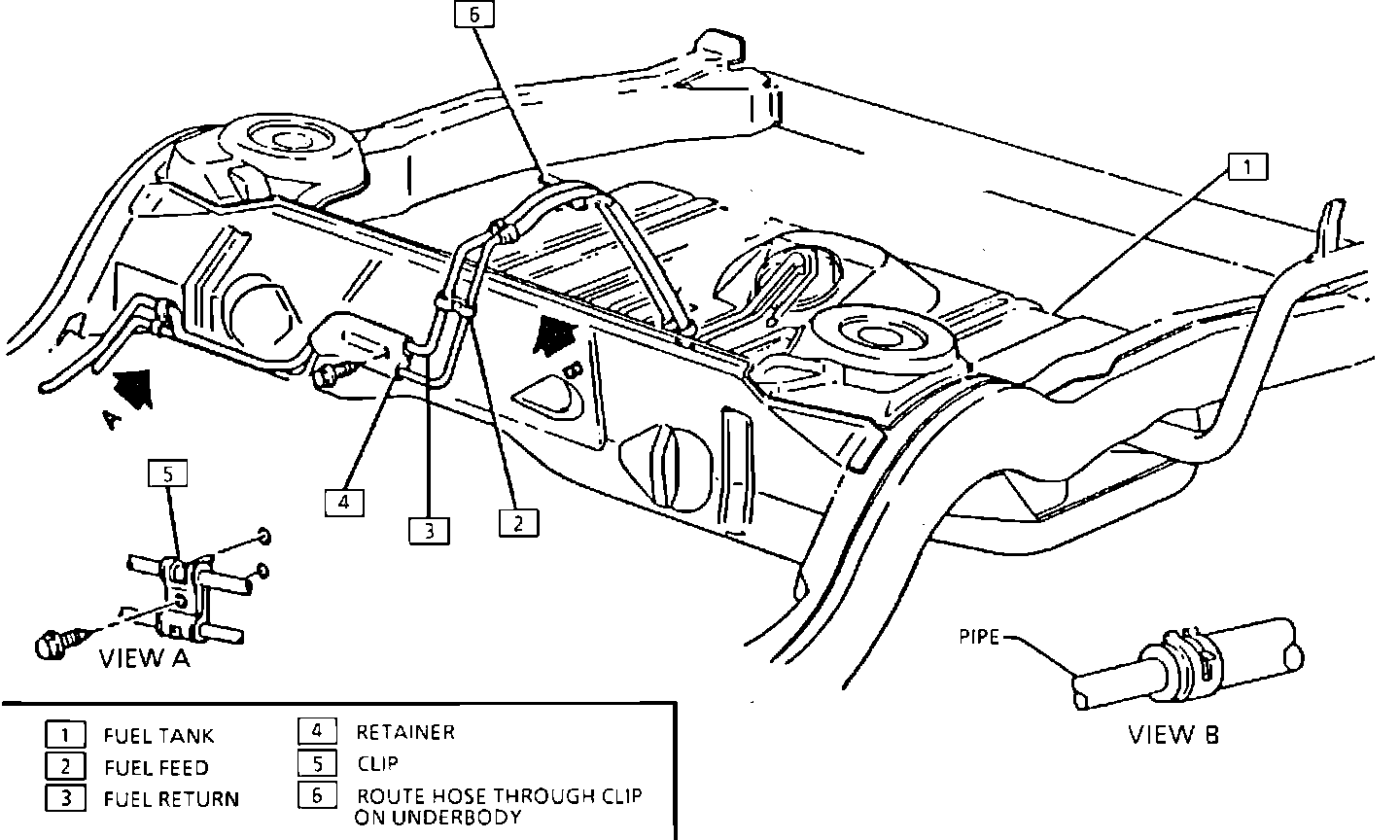 ^ Fuel pipes must not contact the fuel tank or underbody at any point.