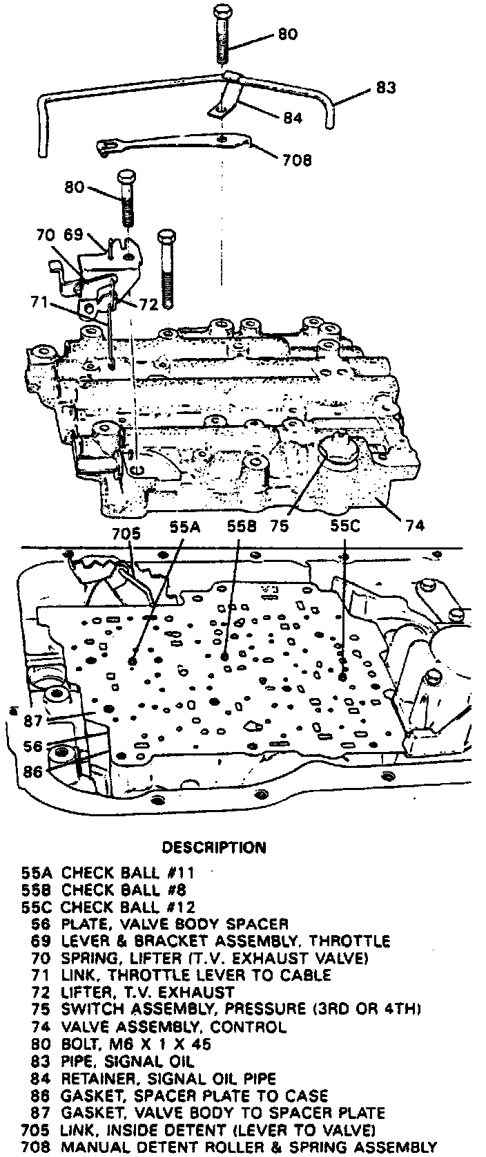 7. Install control valve assembly. Ensure inside detent link and manual valve are positioned properly.