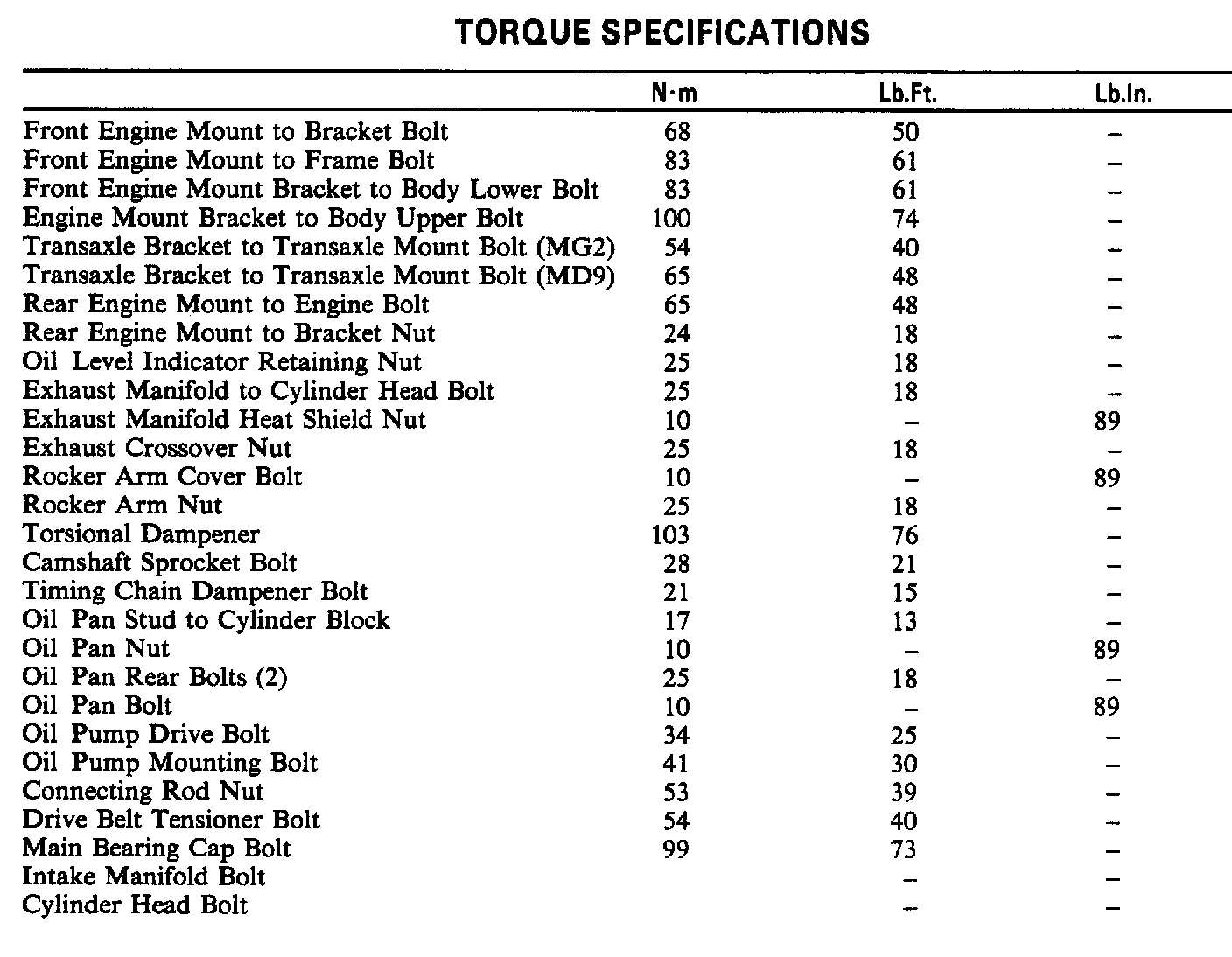 Torque Specifications: