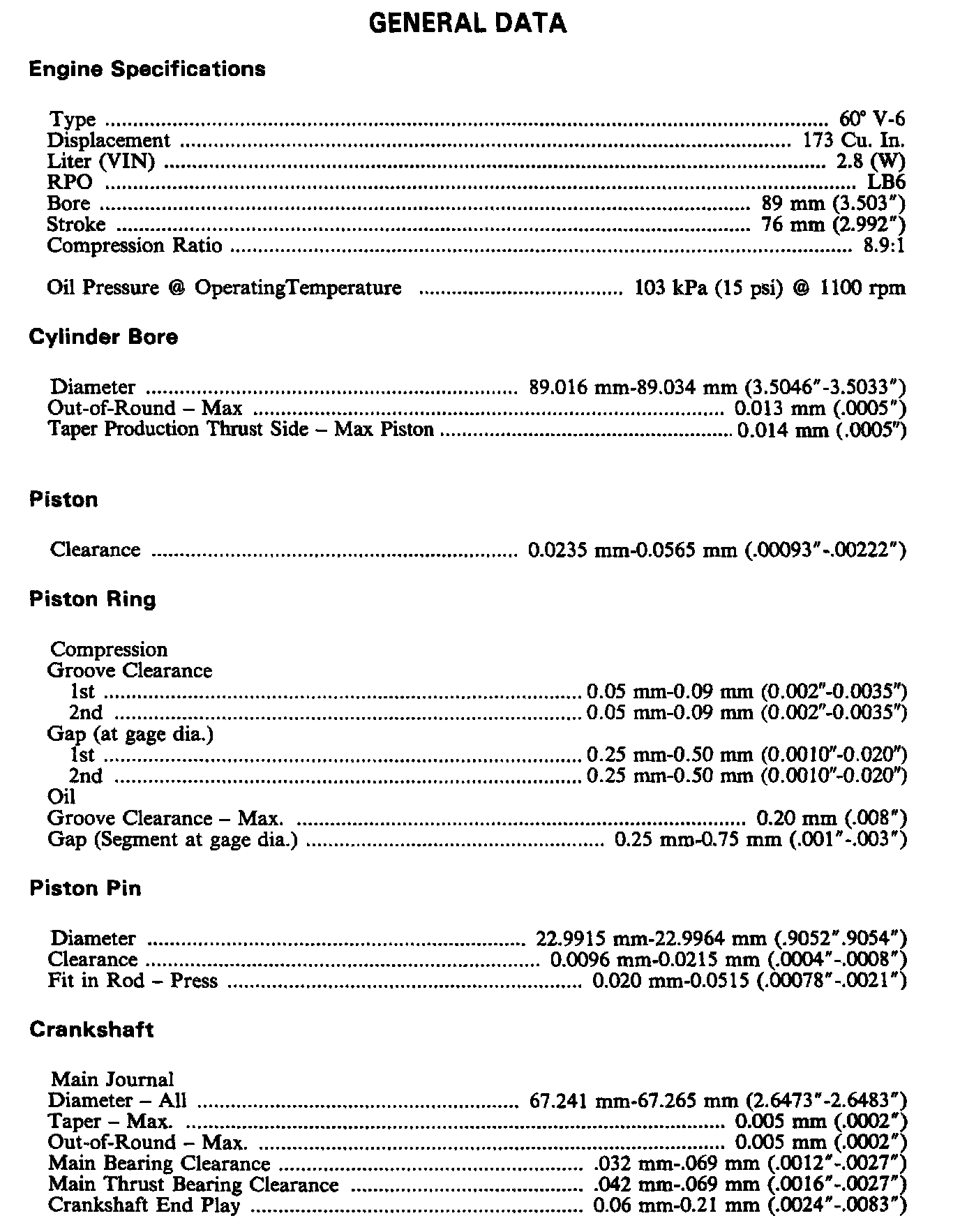 Continued Engine Specifications: