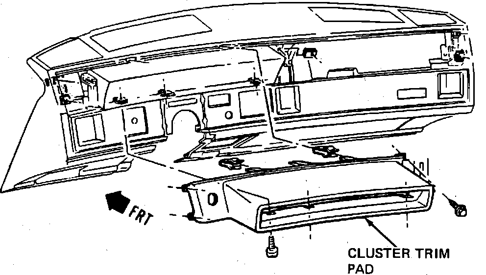20. Remove ten screws attaching instrument cluster trim pad to instrument panel, Fig. 46.