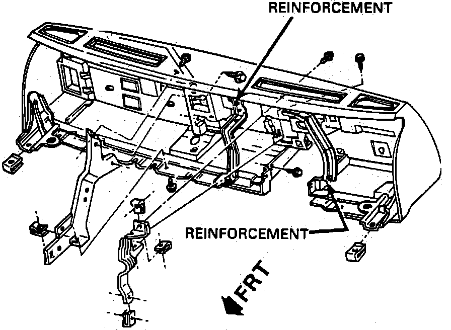 31. Remove two bolts and ground wires, one at each side of the instrument panel.