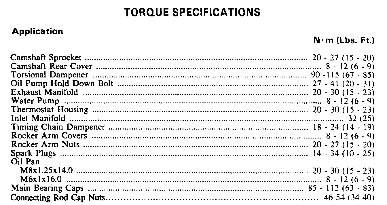 Torque Specifications:
