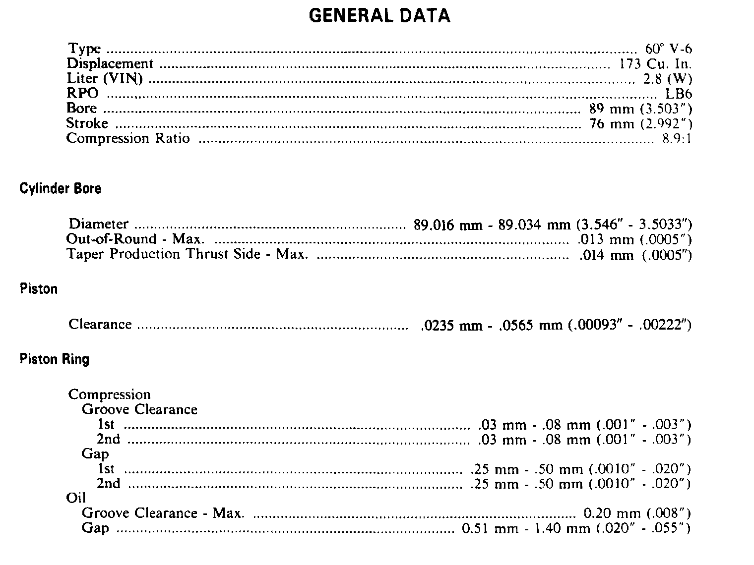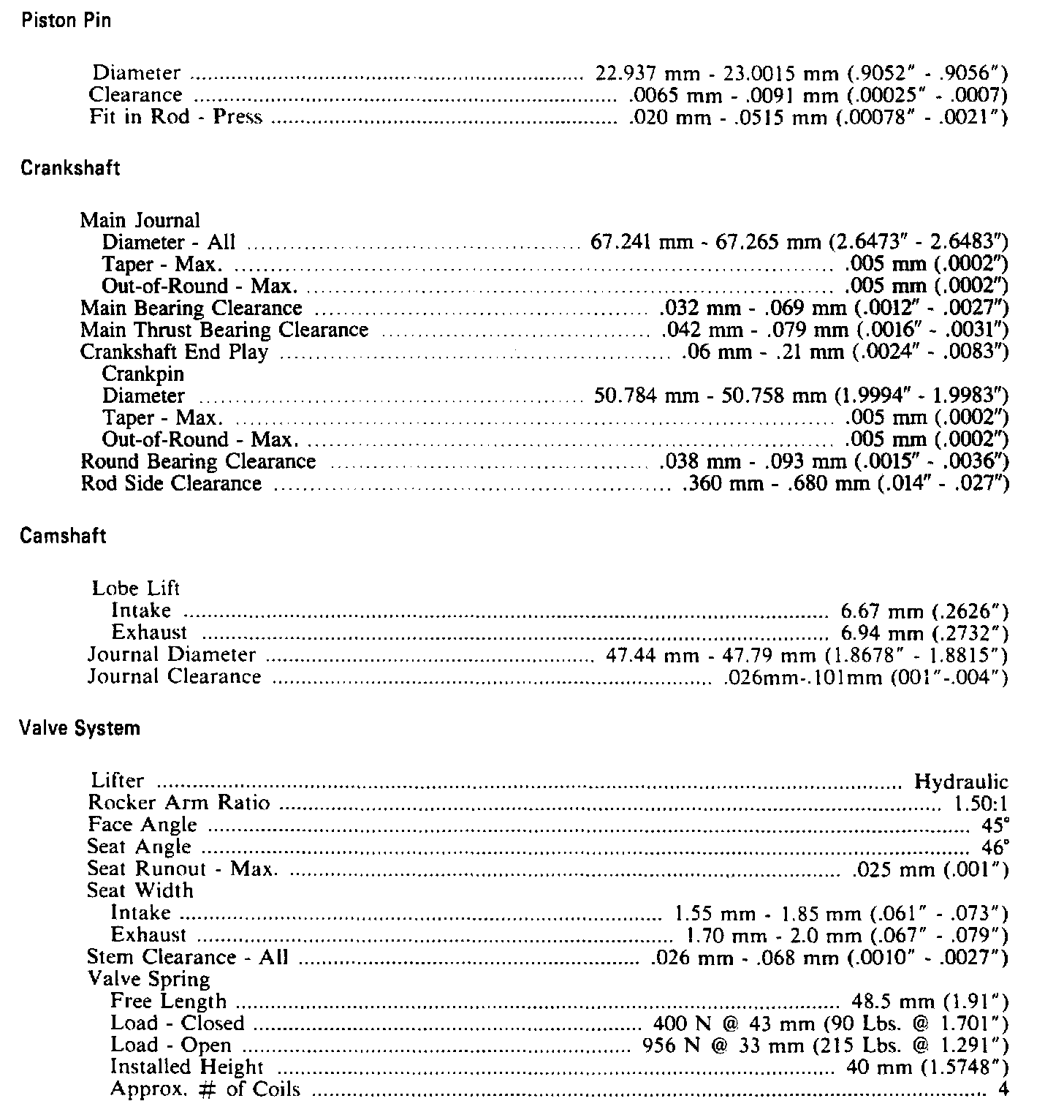Continued Engine Specifications: