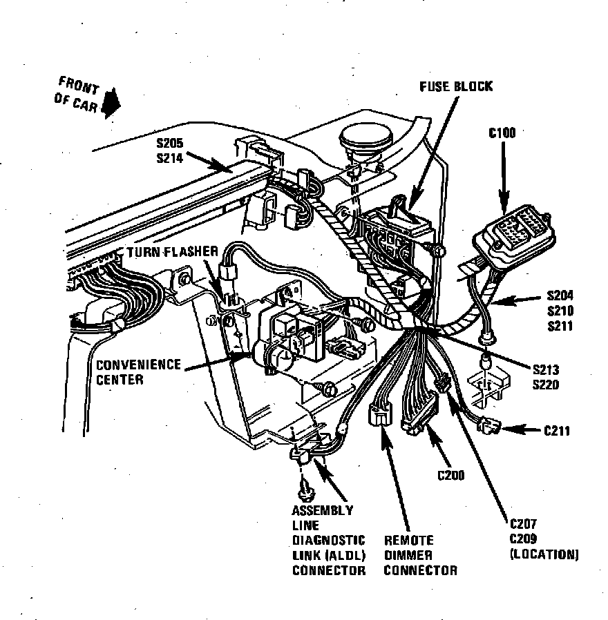 Behind I/P, LH Side Of Steering Column