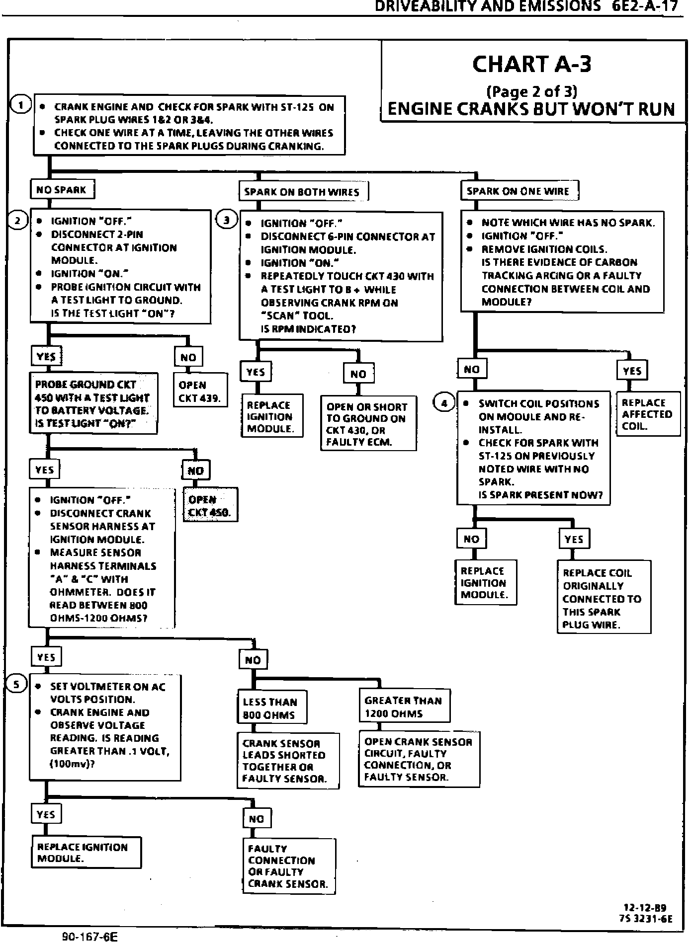 This bulletin updates Chart A-3, "Engine Cranks But Won't Run" (Page 2 of 3), on page 6E2-A-l7 in Section 6E2, "Driveability And Emissions." This update applies to 1989 2.OL (VIN 1) and 1990 2.2L (VIN G) "J" and "L" Carline Service manuals.