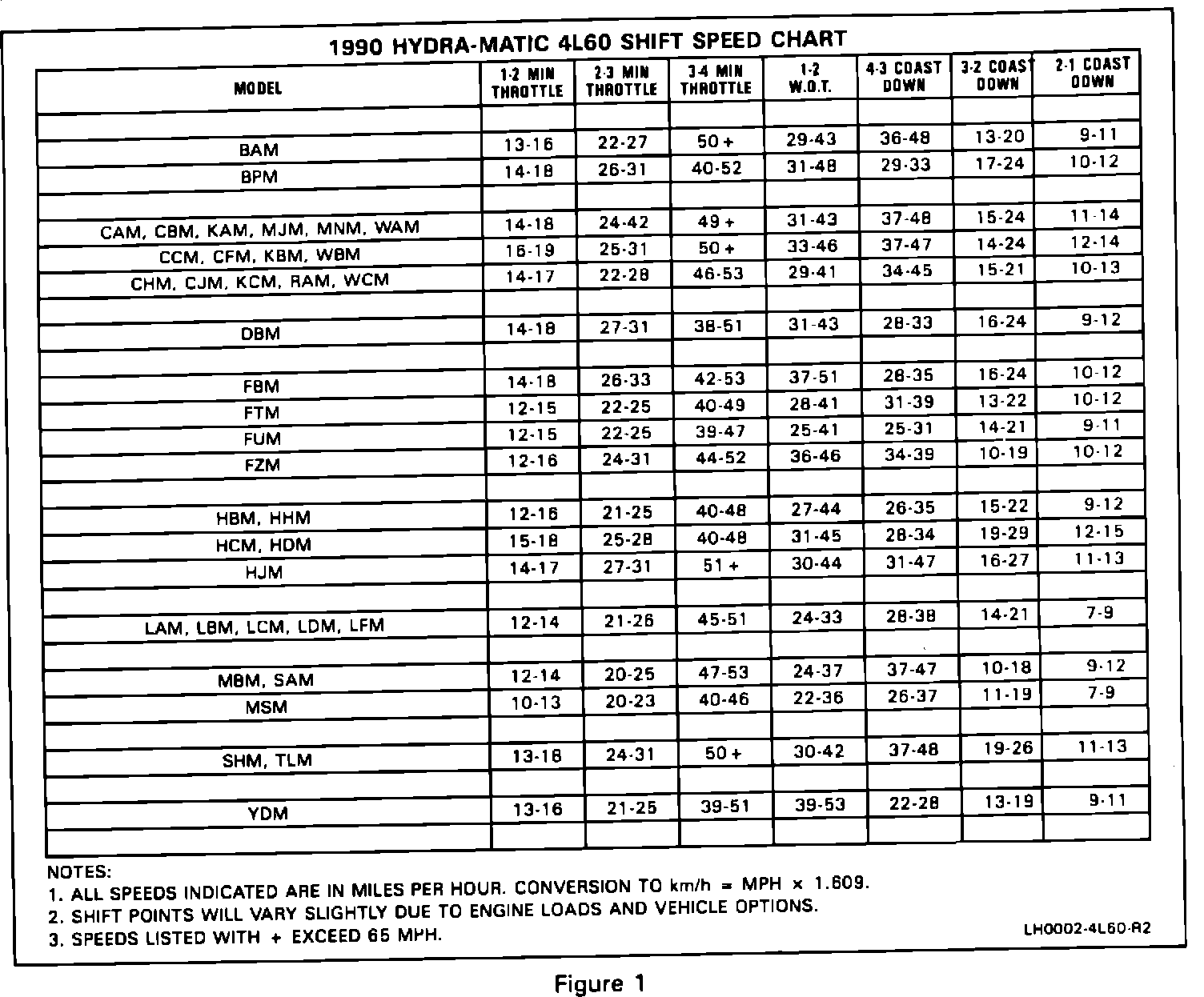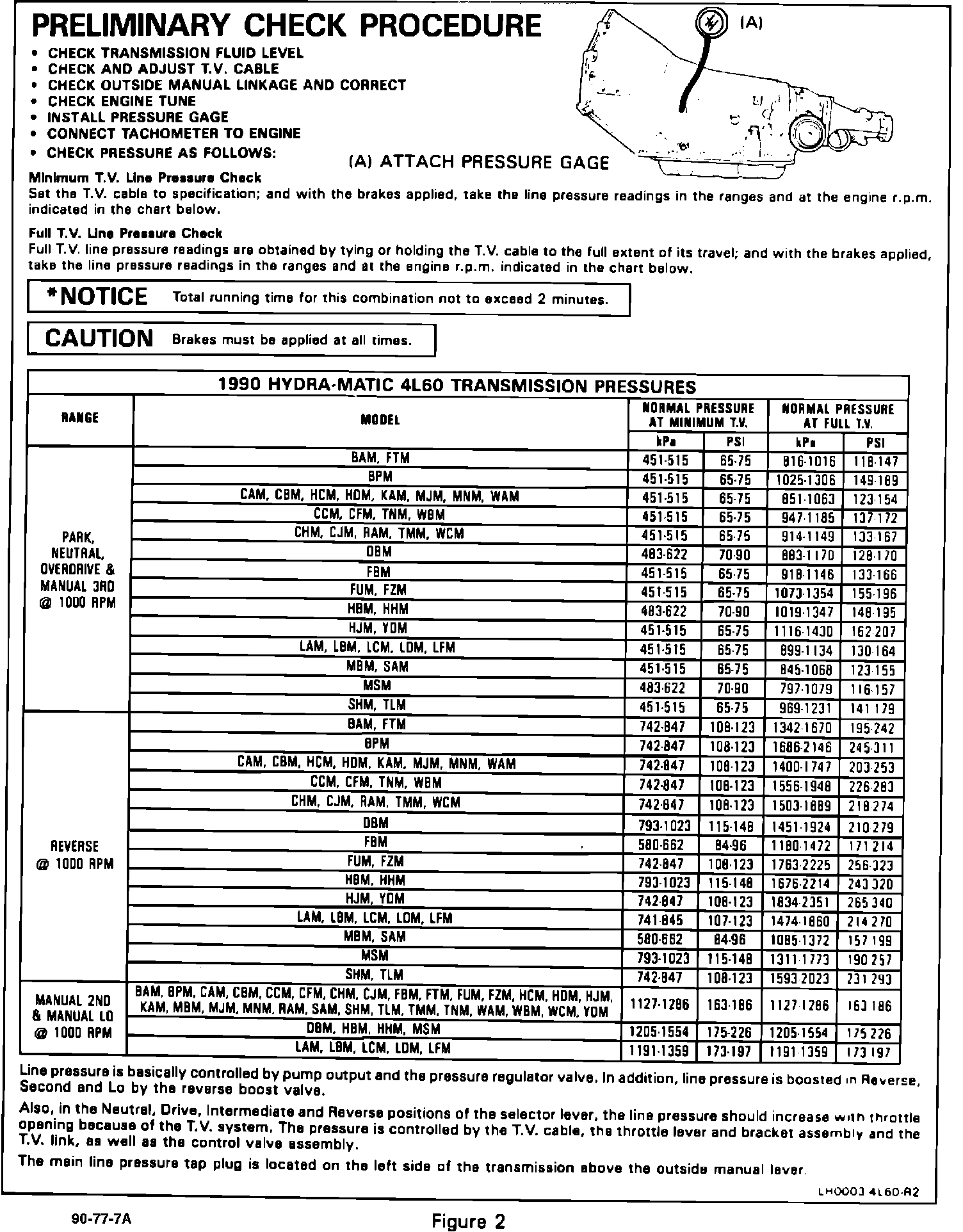 Model and Year: 1990 PASSENGER CARS WITH 4L60 TRANSMISSION