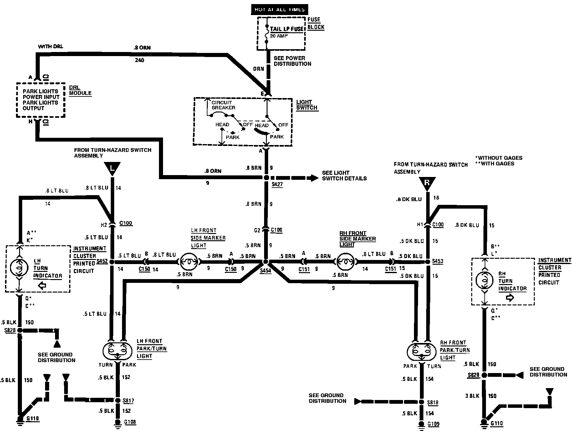 Exterior Lamps. Front Marker, Hazard/Turn & Park: