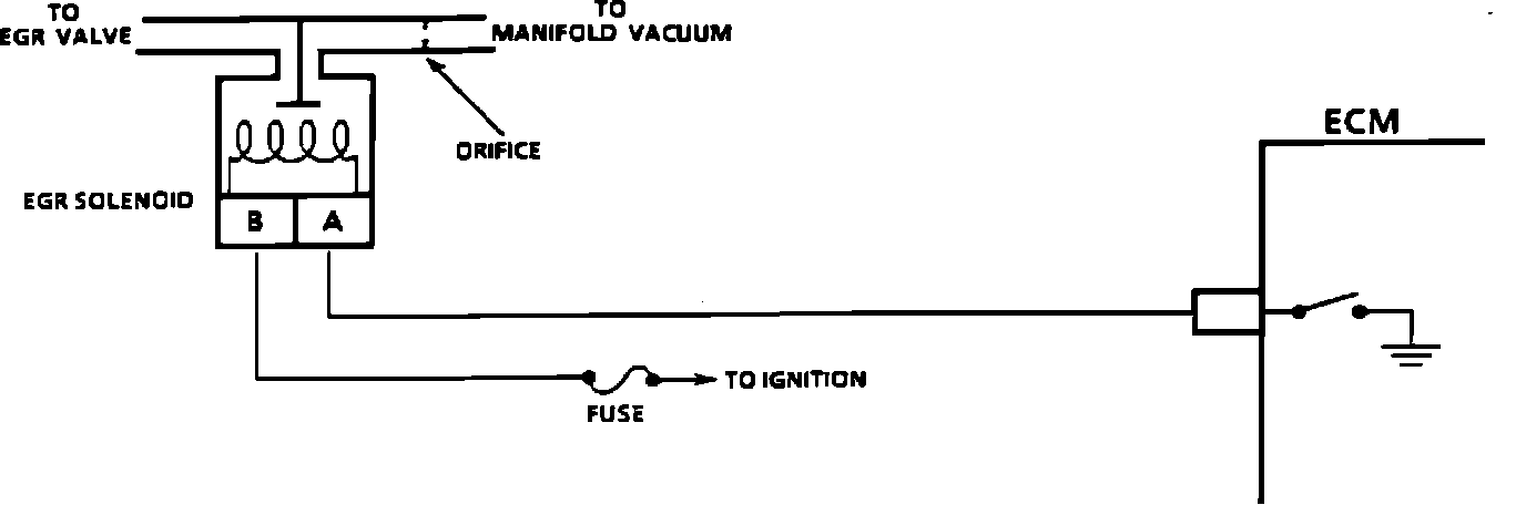 The ECM operates a vacuum solenoid to control the EGR valve. The solenoid is energized and de-energized by the ECM. The ECM provides a ground path to energize the solenoid. This allows vacuum to flow to the EGR valve. Once the ECM has grounded the EGR circuit, the ECM will monitor engine operating conditions to determine if exhaust gas flow has entered the intake manifold. The ECM controls the operation of the EGR valve based on various engine sensor input.