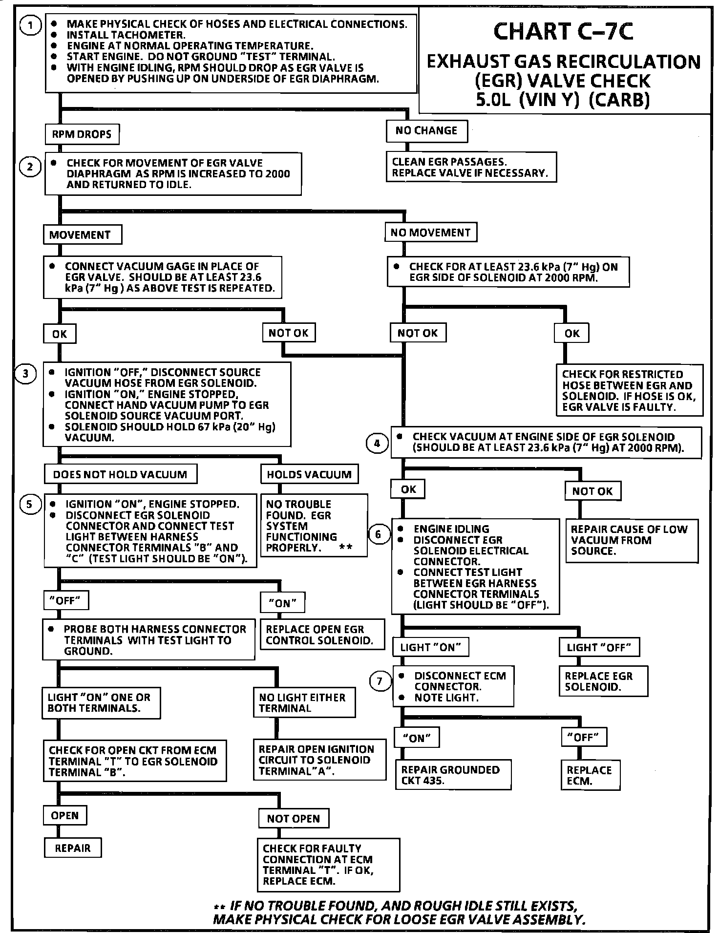 Note: Because of the internal bleed valve in the positive backpressure EGR used on this engine the valve will not open by applying vacuum with the engine stopped or at idle.