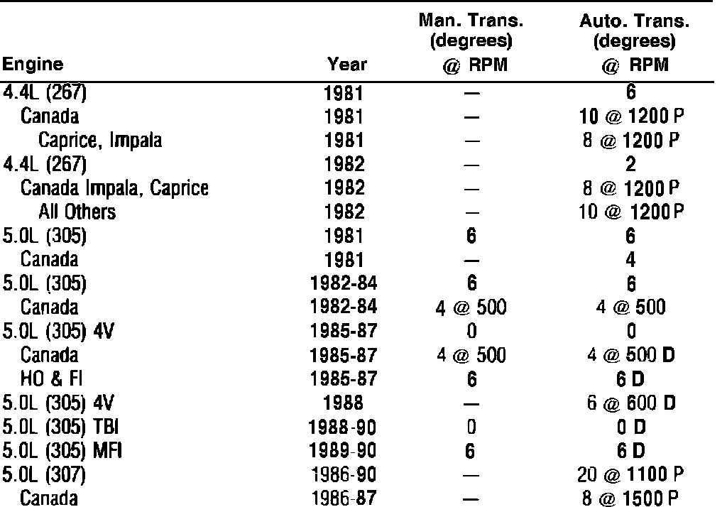Ignition Timing: Specifications