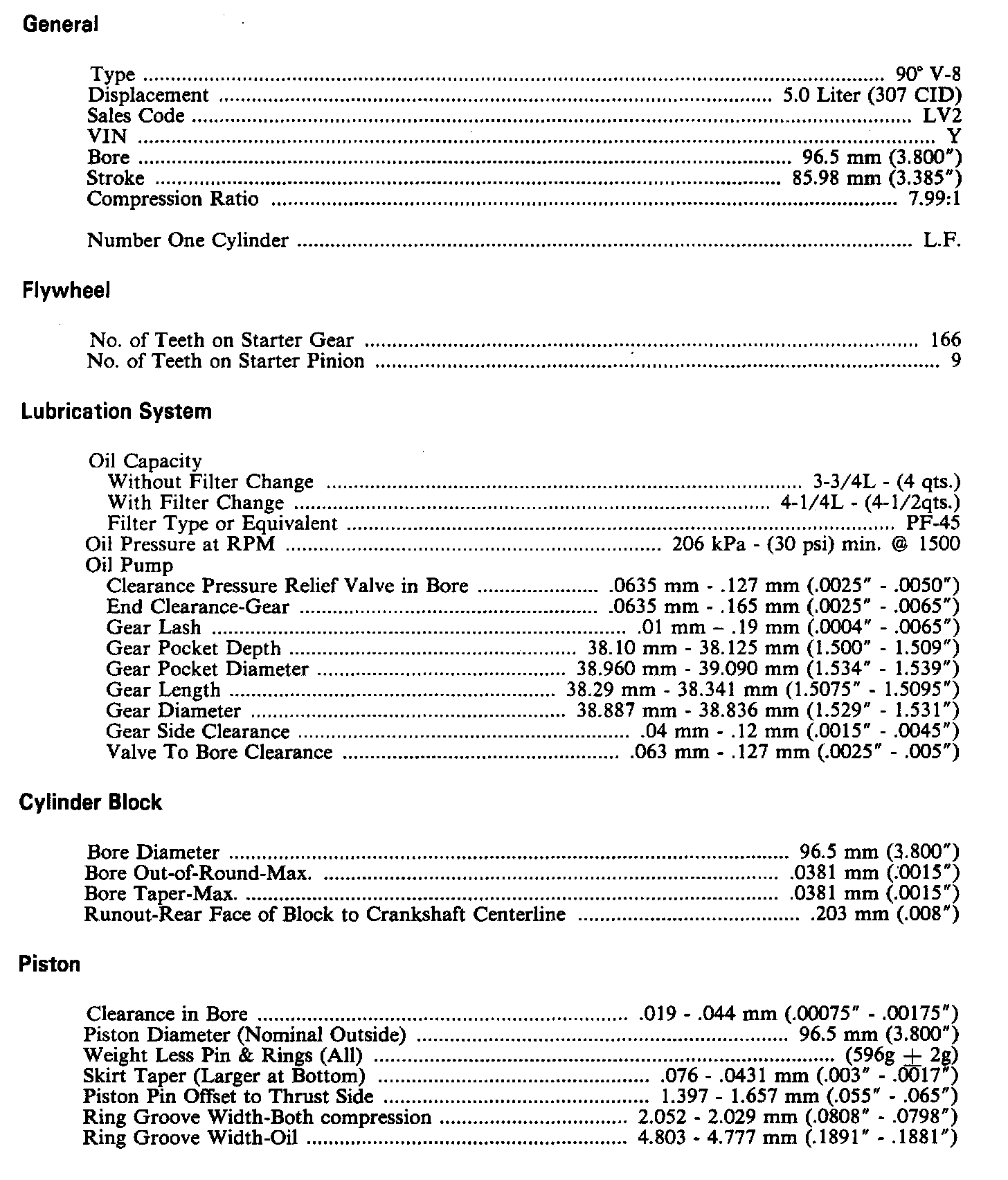 Caprice V8-307 5.0L
