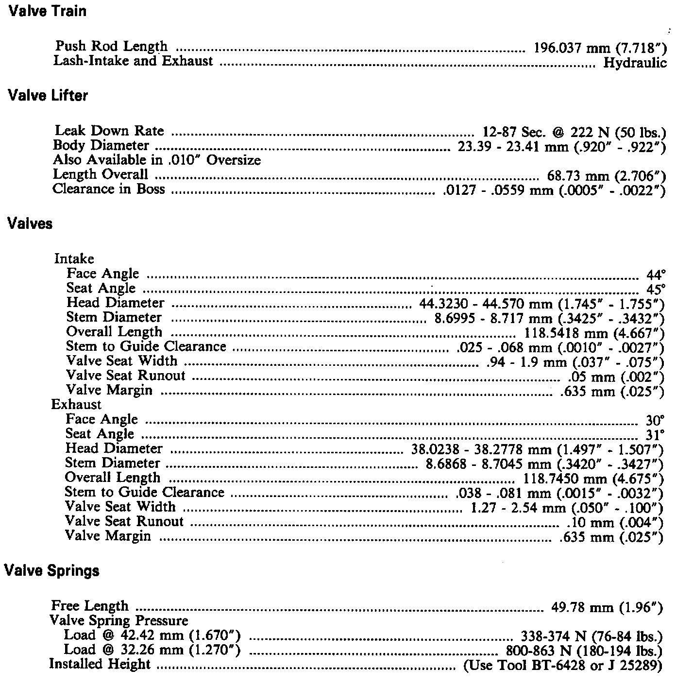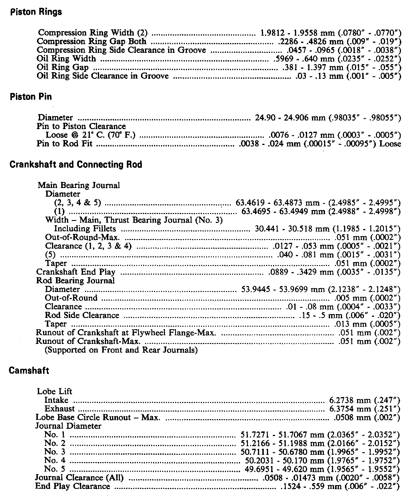 Dimension & Clearance Specifications - Engine