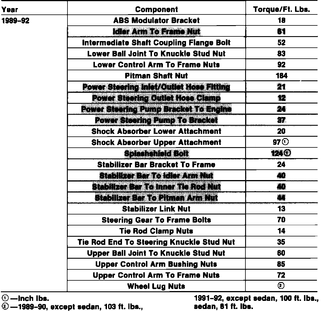 Tightening Specifications: