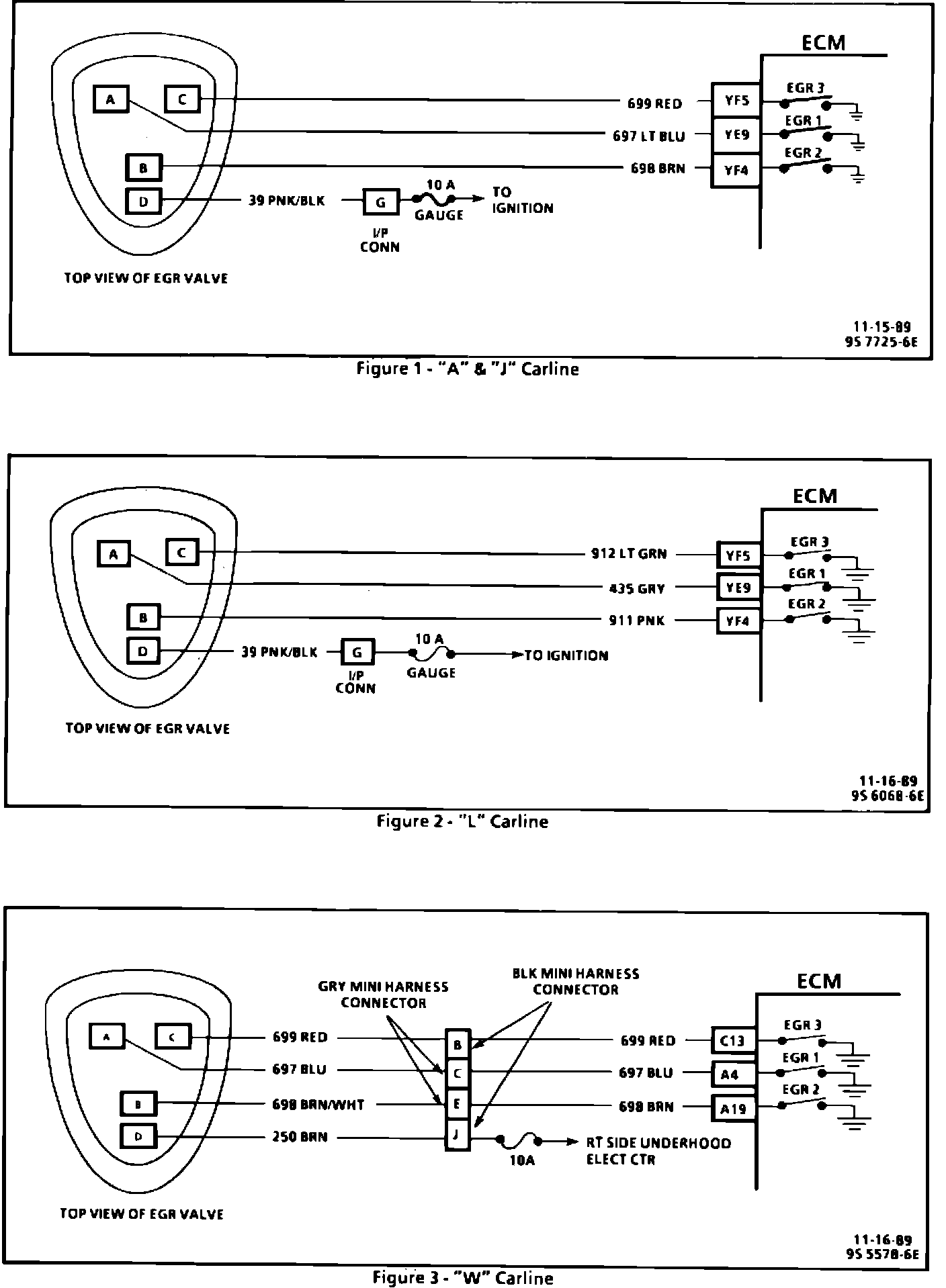 The correct circuit identification and EGR valve connector terminal locations are shown in the illustrations.