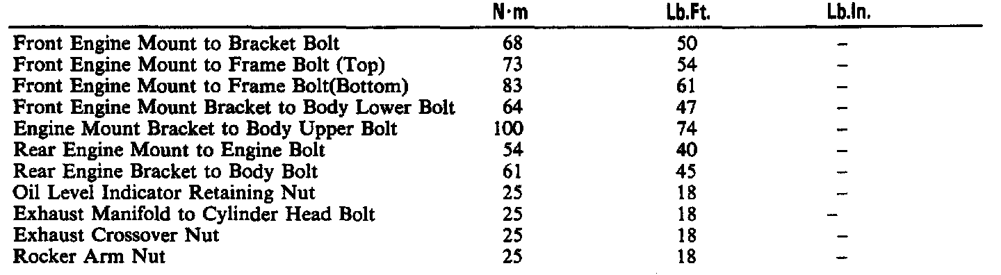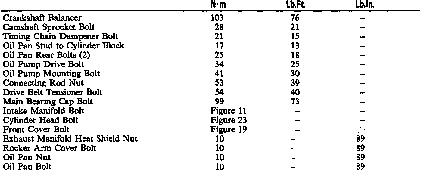 Torque Specifications: