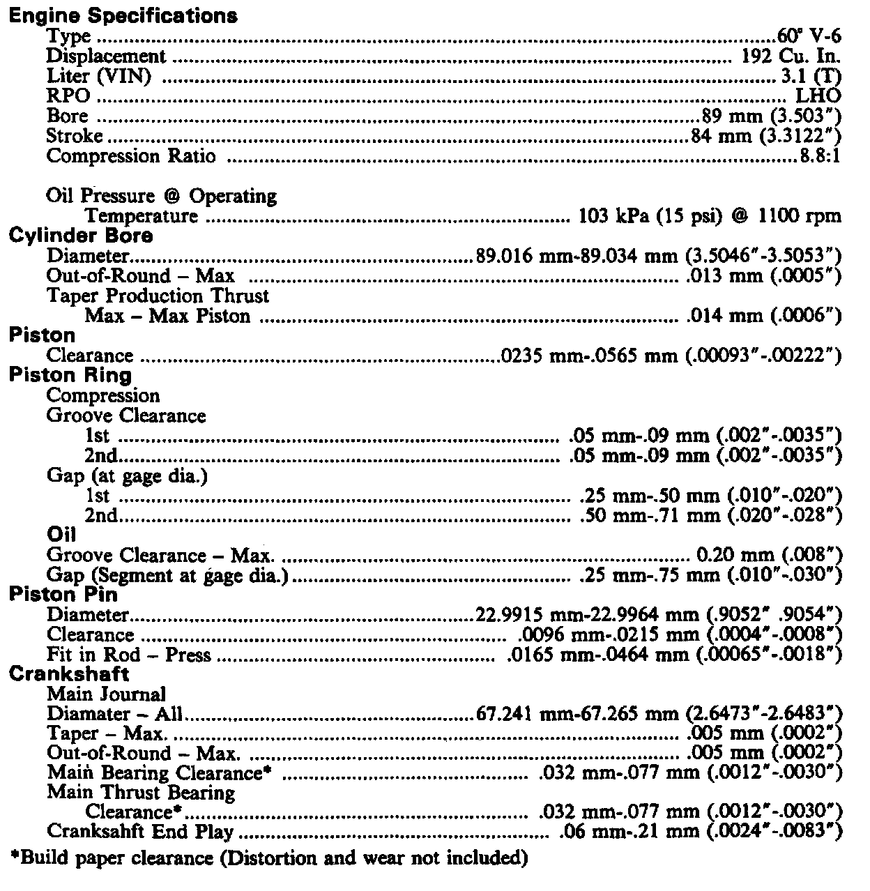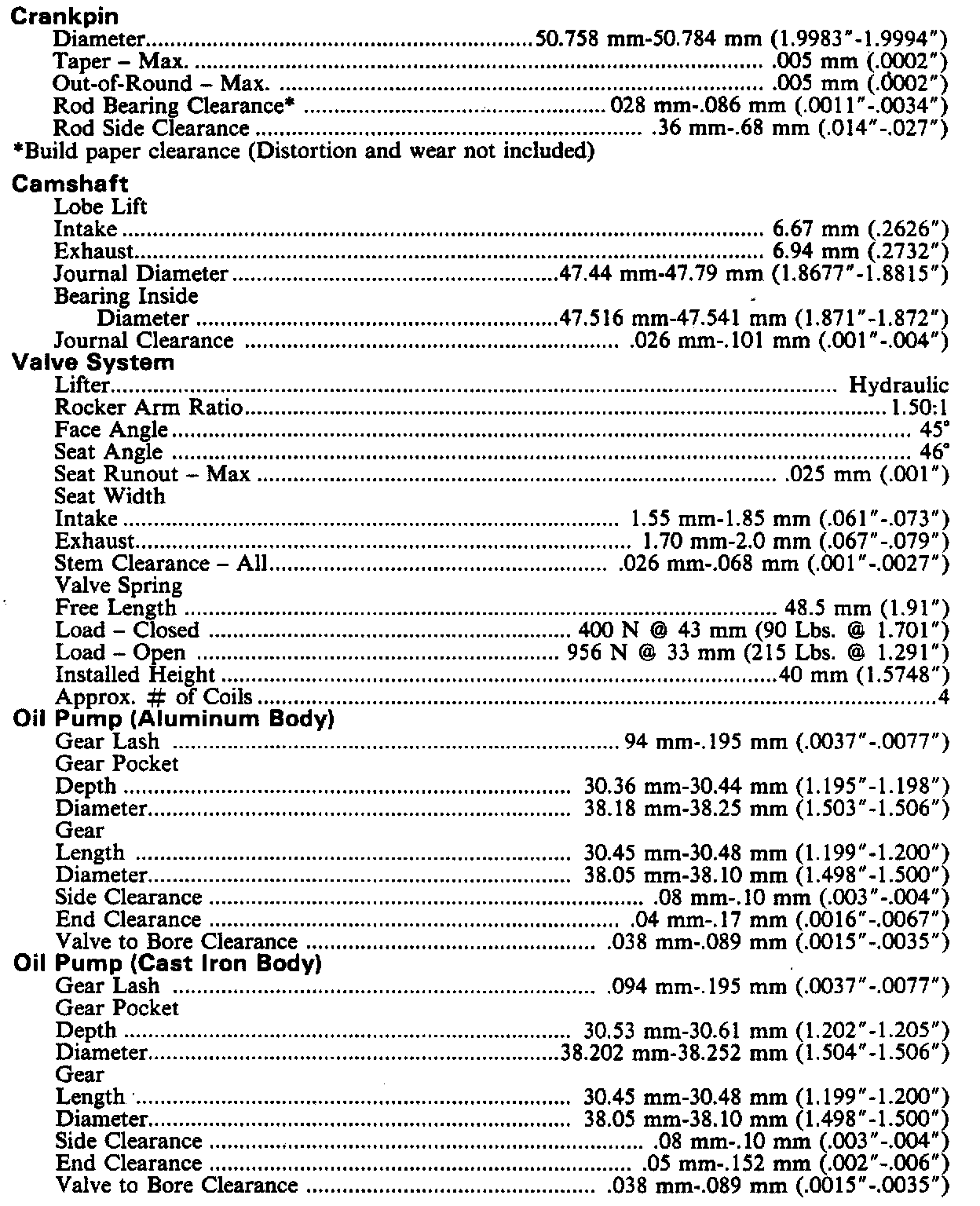 Engine Specifications: