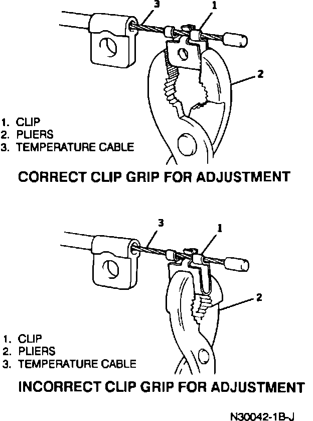 NOTICE: FAILURE TO GRIP "CLIP" CORRECTLY WILL DAMAGE ITS ABILITY TO HOLD POSITION ON THE CABLE. THE TEMPERATURE CONTROL CABLE MUST BE REPLACED IF "CLIP" RETENTION FAILS.