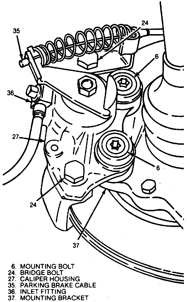4. Install brake line fitting (36) onto caliper using new copper washer , if removed. Torque to 44 Nm (32 lb. ft.).
