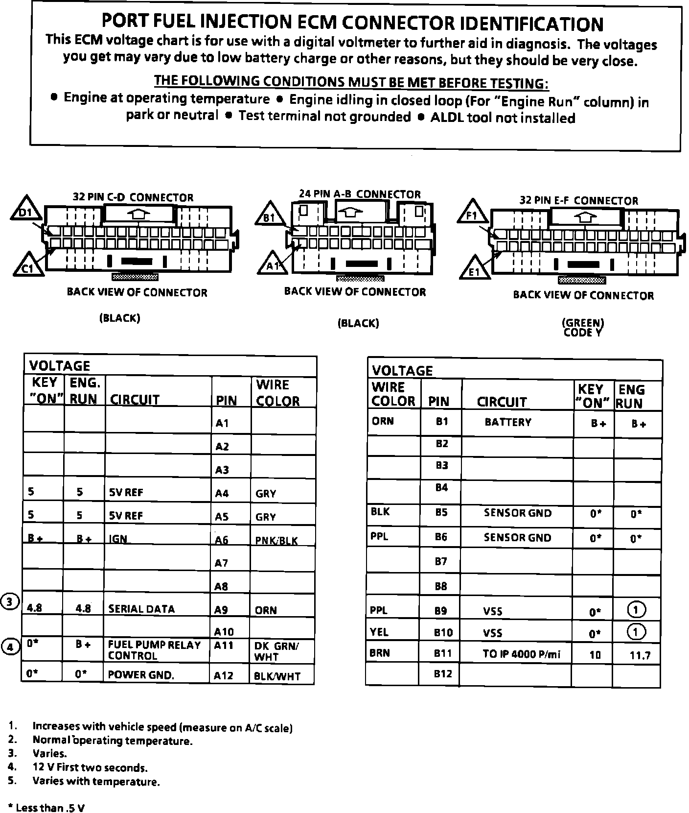 ECM Connector Terminal Identification And Voltage Specification (Part 1 Of 2):