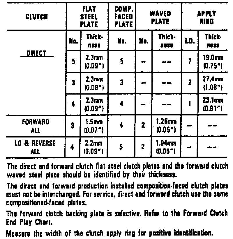 Fig. 53, Clutch plate & apply ring usage chart. 1990 units: