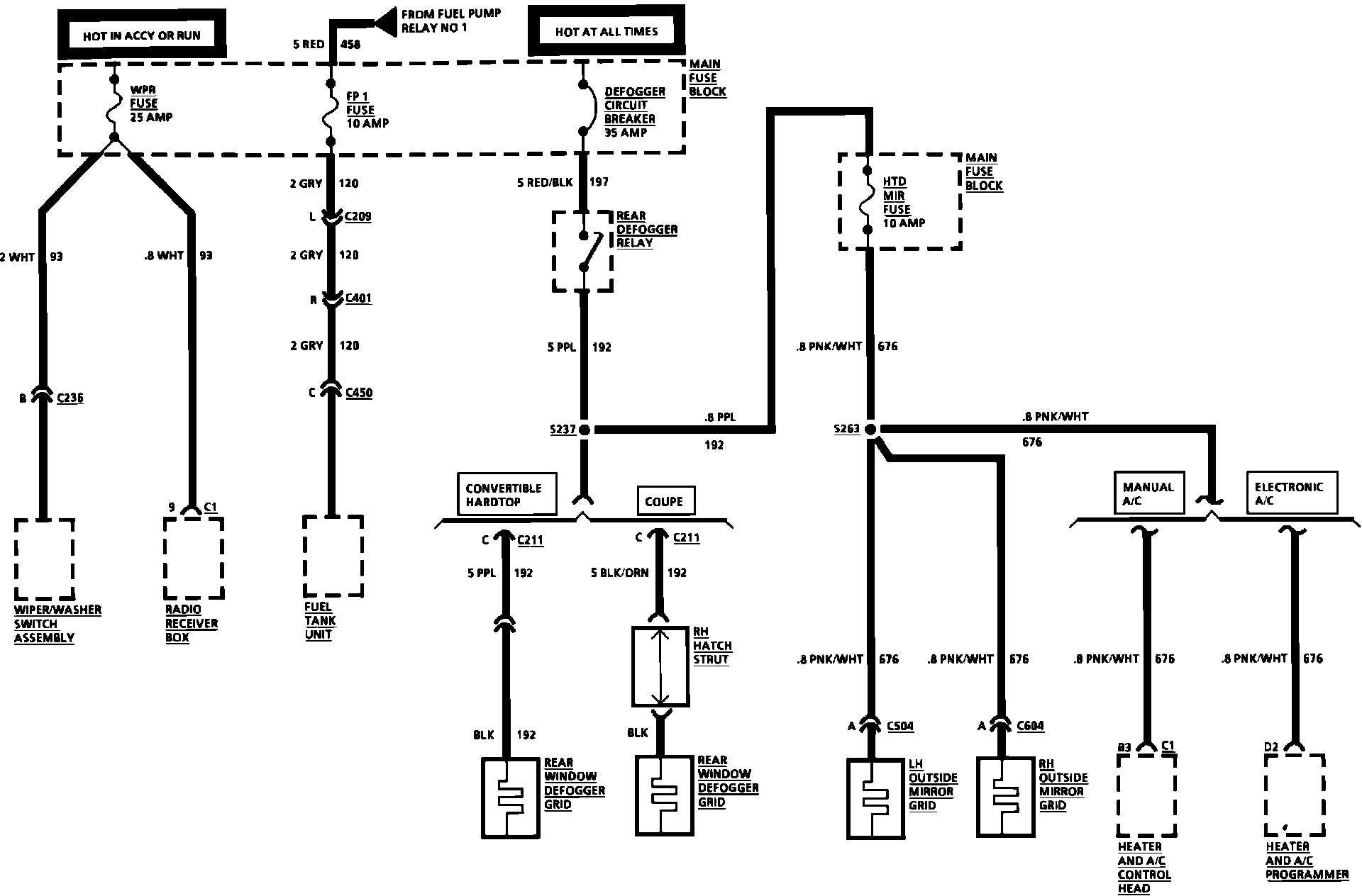 Fuse Block Details (Wiper Fuse, Fuel Pump 1 Fuse, Defogger Circuit Breaker & Heated Mirror Fuse):
