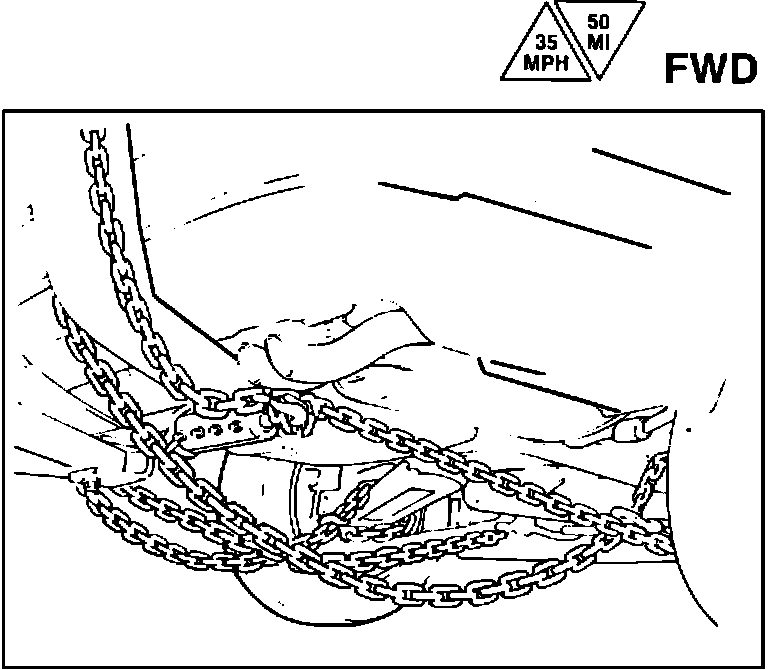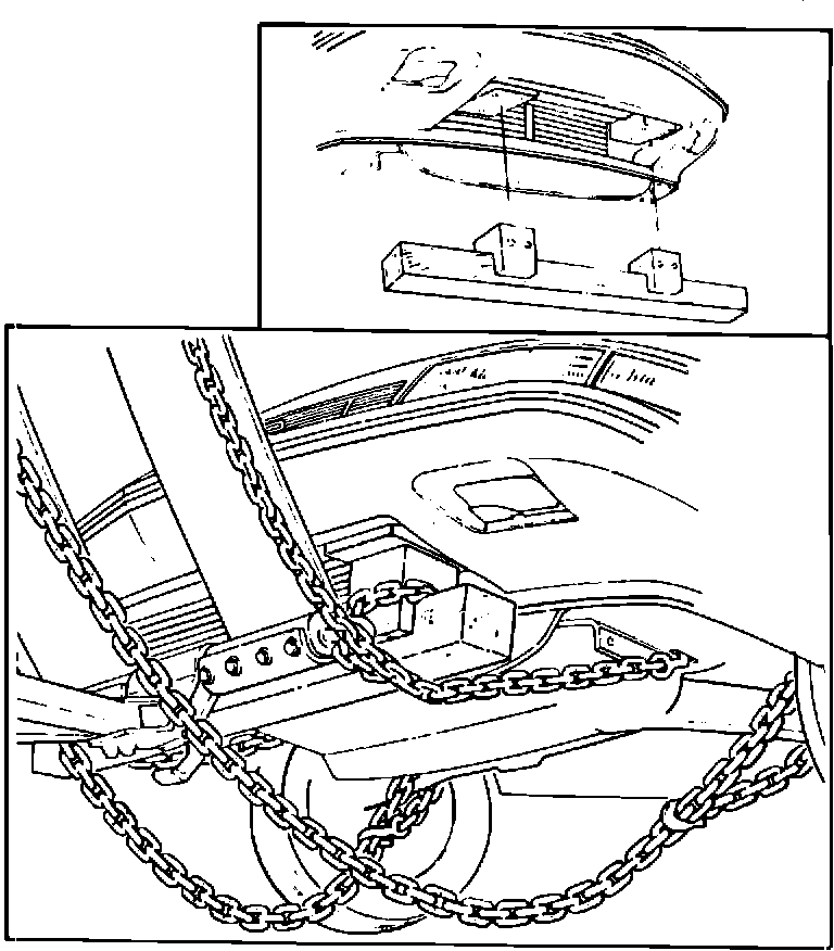 Attach "T" hook chains to slots in bottom of floor pan just ahead of rear wheels.