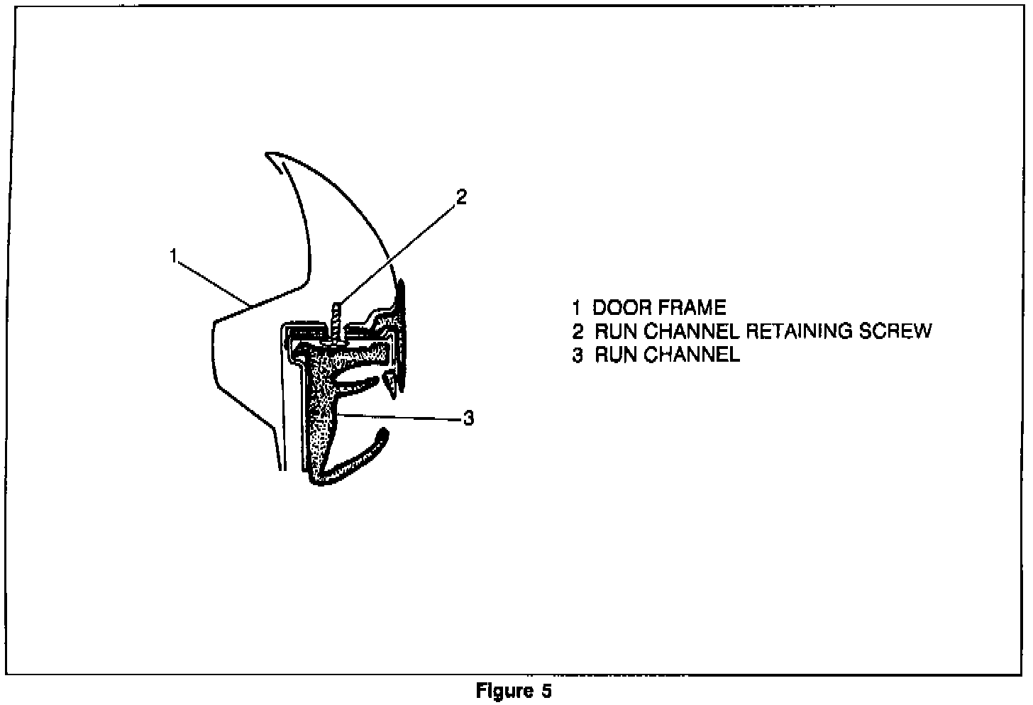 2. Remove the window run channel from the retainer in the header of the door frame by pulling down and outboard on the run channel.
