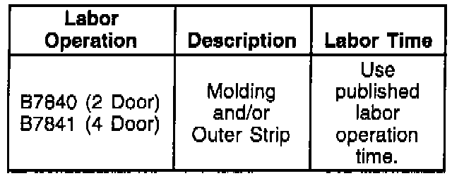 1. Remove the outer door beltline molding per Section 10 of the Service Manual.