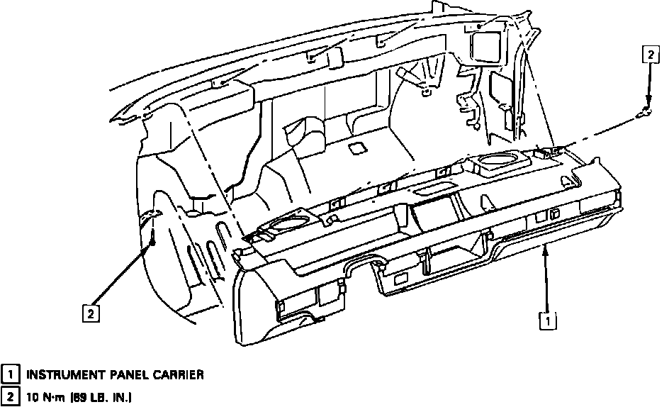 24. Remove seven instrument panel carrier assembly retaining bolts, Fig. 197.