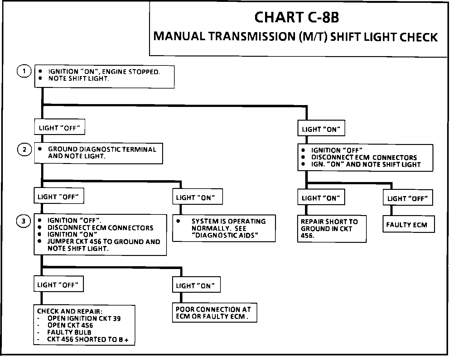 1. This should not turn "ON" the shift light. If the light is "ON," there is a short to ground in CKT 456 wiring or a fault in the ECM.