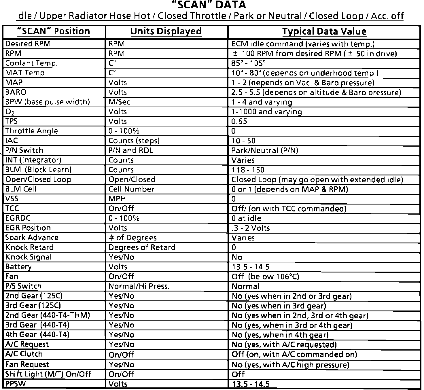Typical Scan Data Values: