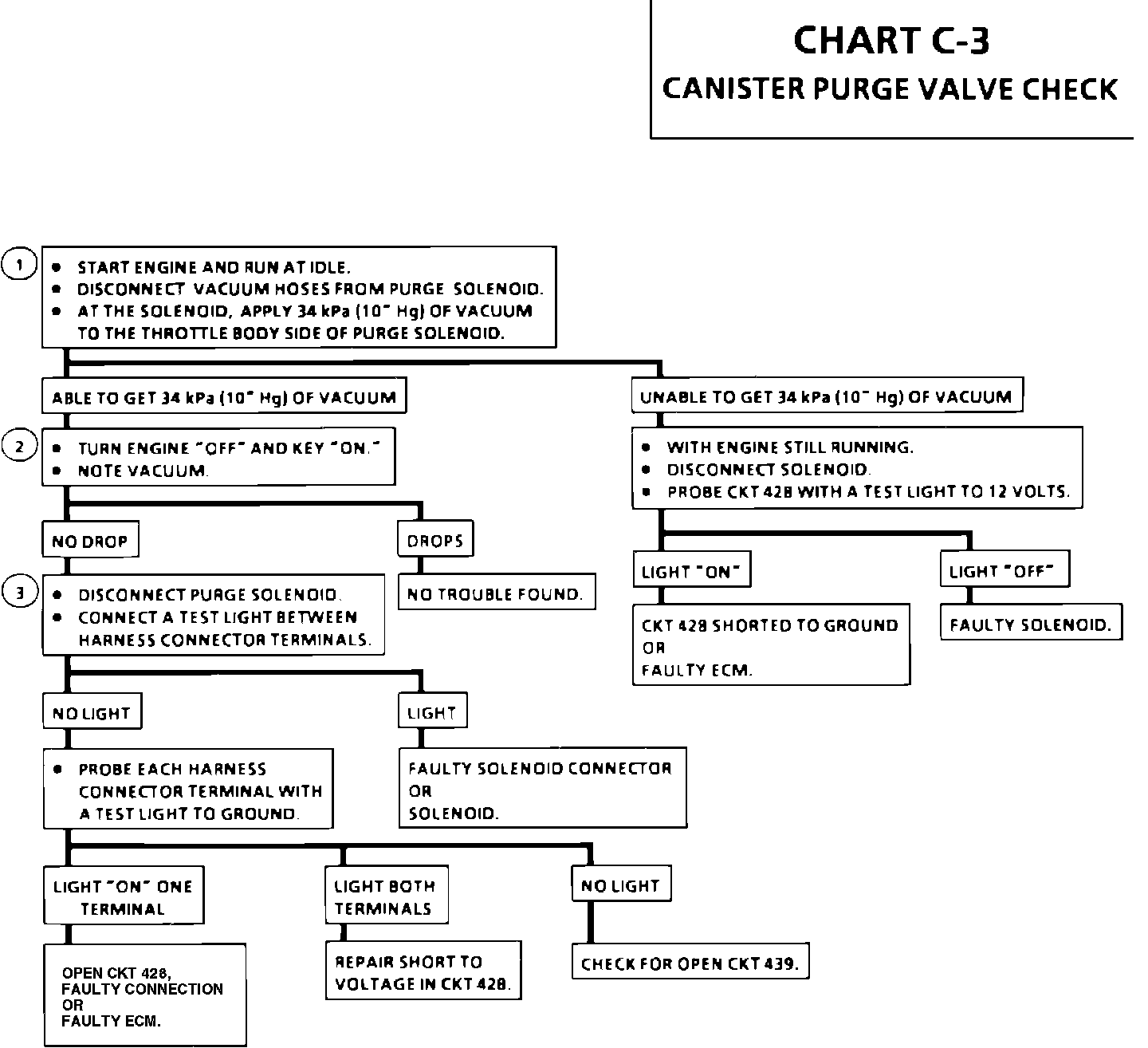 3. This checks for a complete circuit. Normally there is ignition voltage on circuit 439, and the ECM provides the ground path on circuit 428. A short in the canister purge solenoid could cause an open circuit in the ECM.