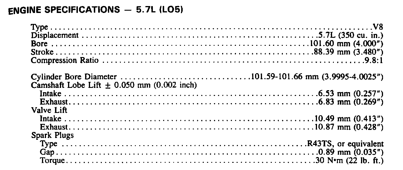 Engine Specifications (5.0L) LO3: