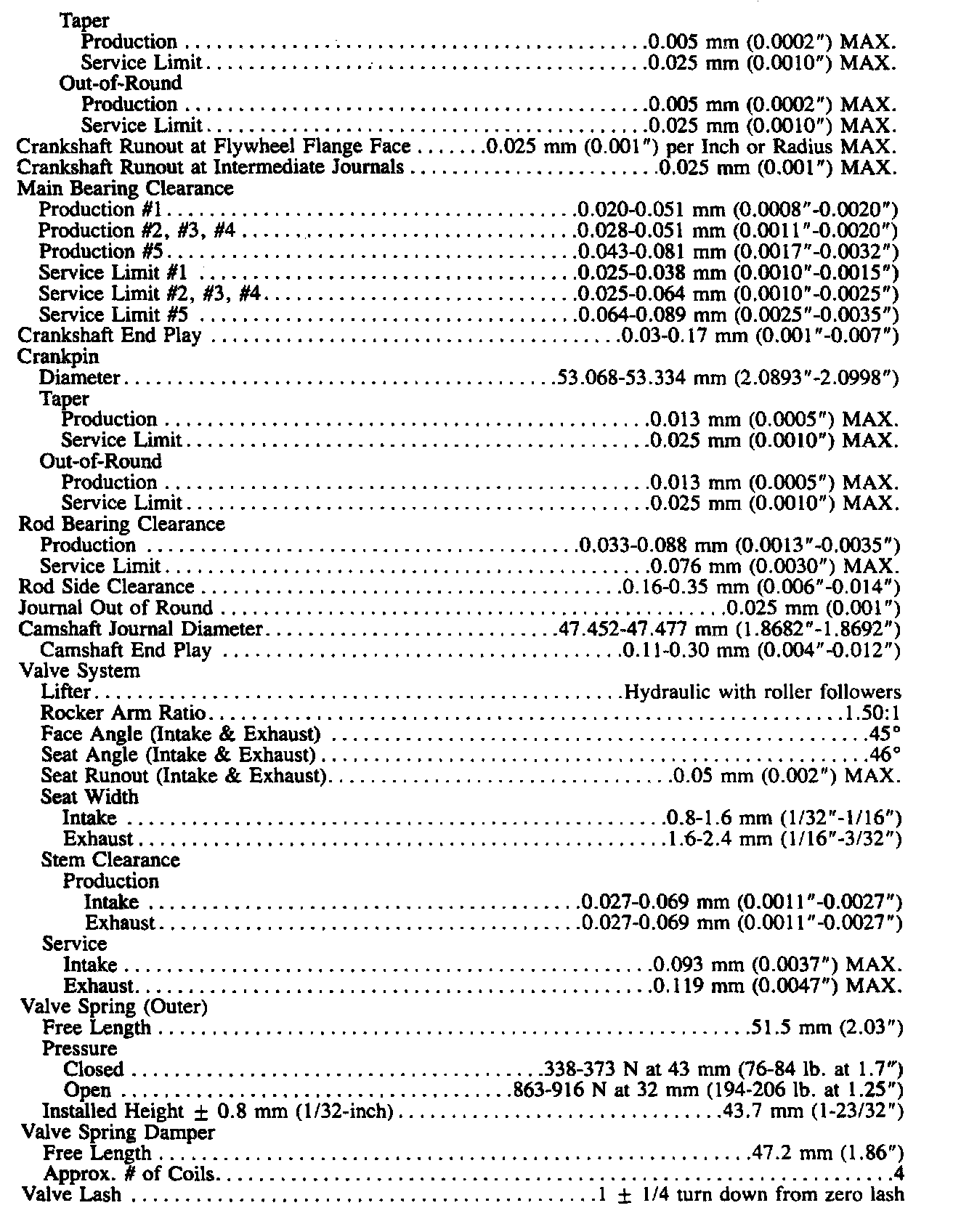 Continued Engine Specifications: