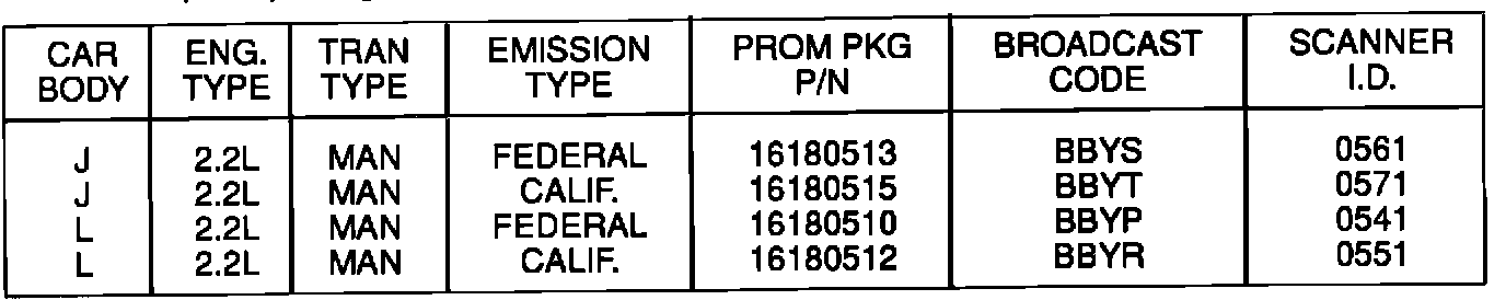 1990-91 CORSICA, BERETTA AND CAVALIER WITH 2.2L ENGINE AND MANUAL TRANSMISSION
