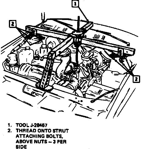 15. Remove left side suspension support attaching bolts, then swing support aside.
