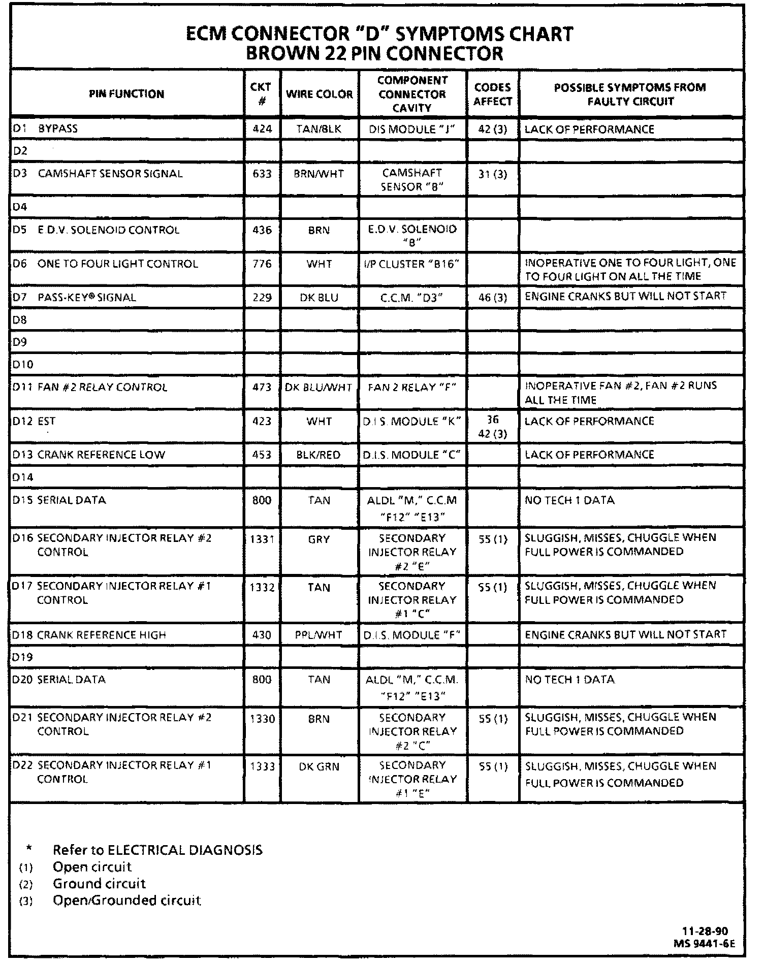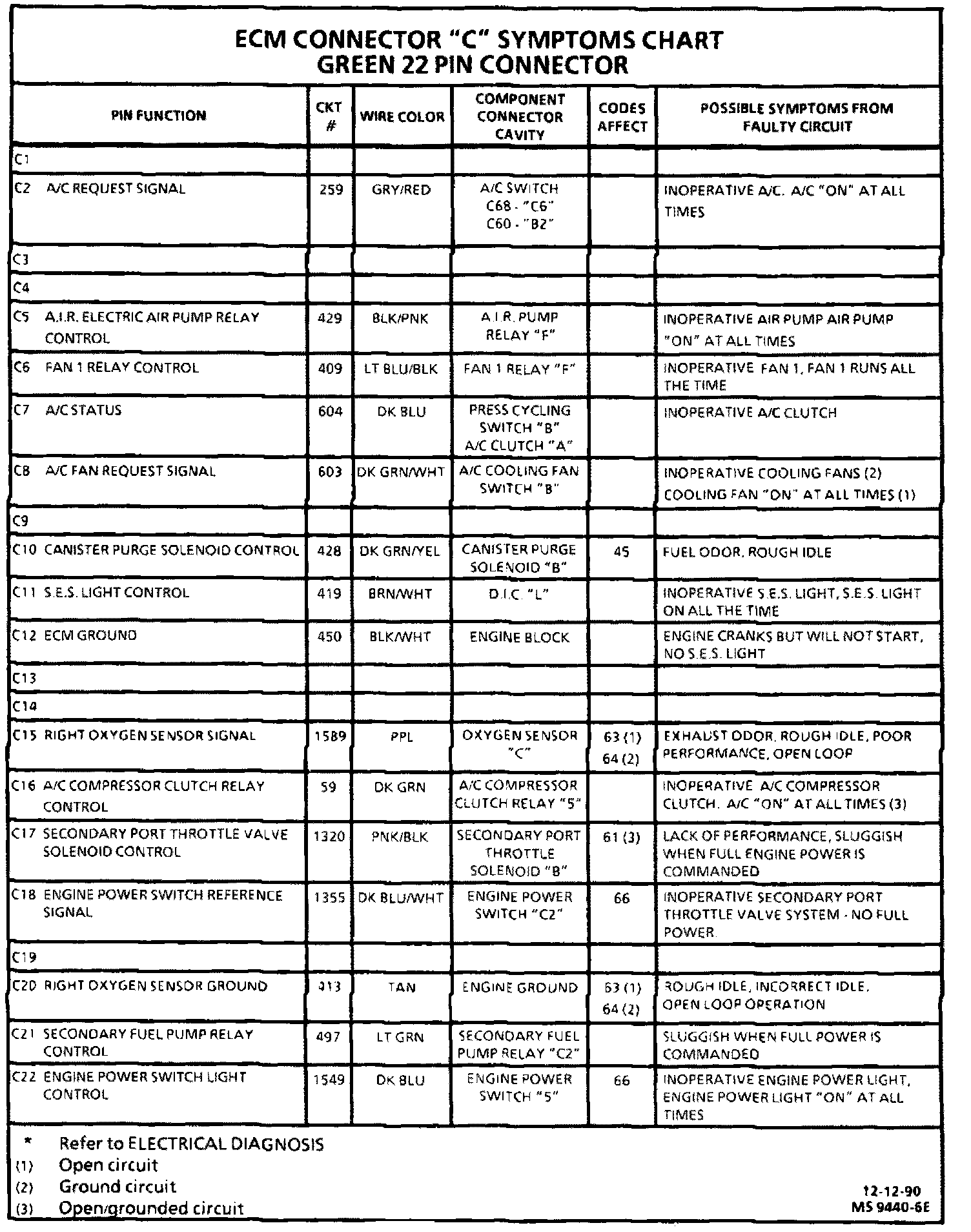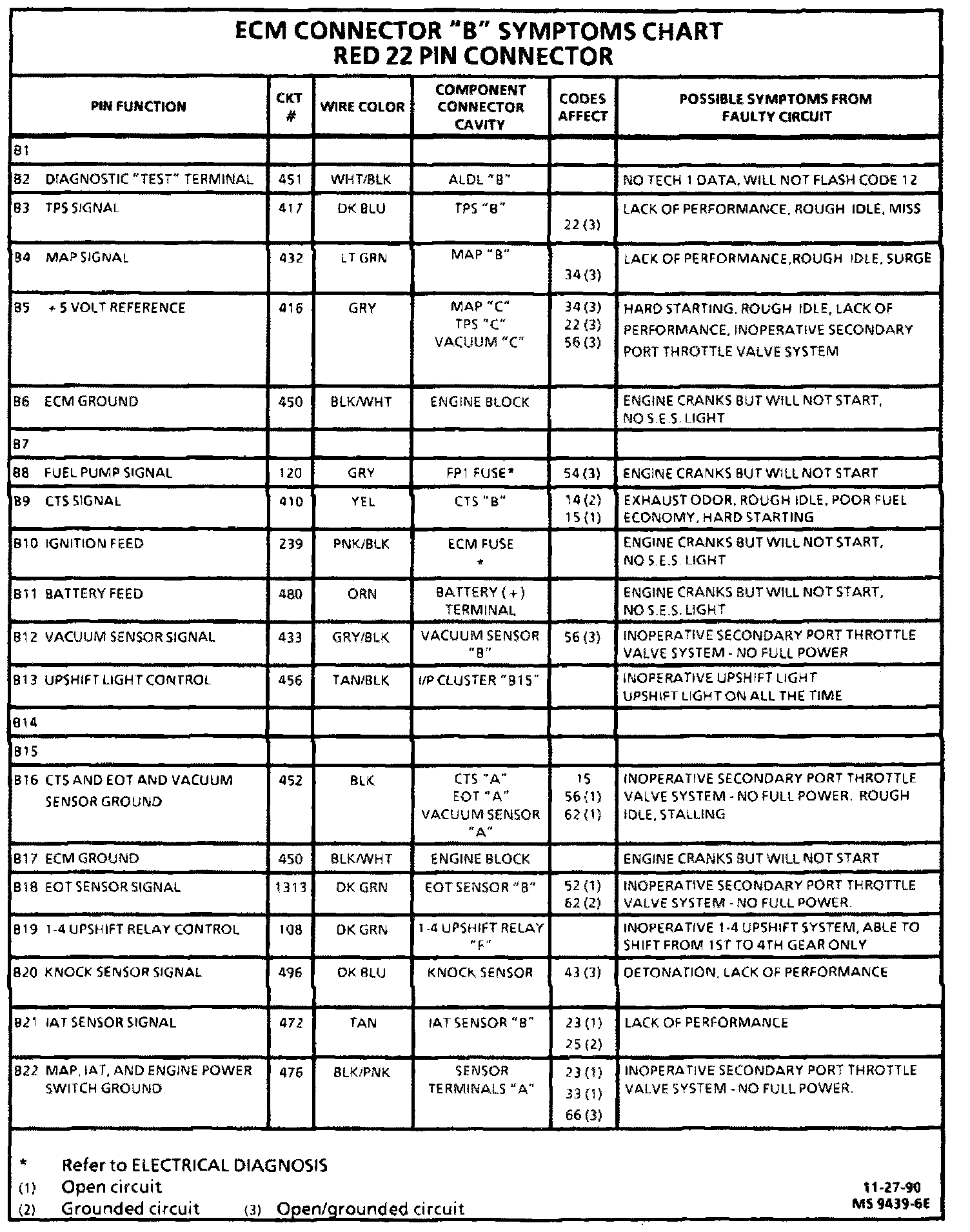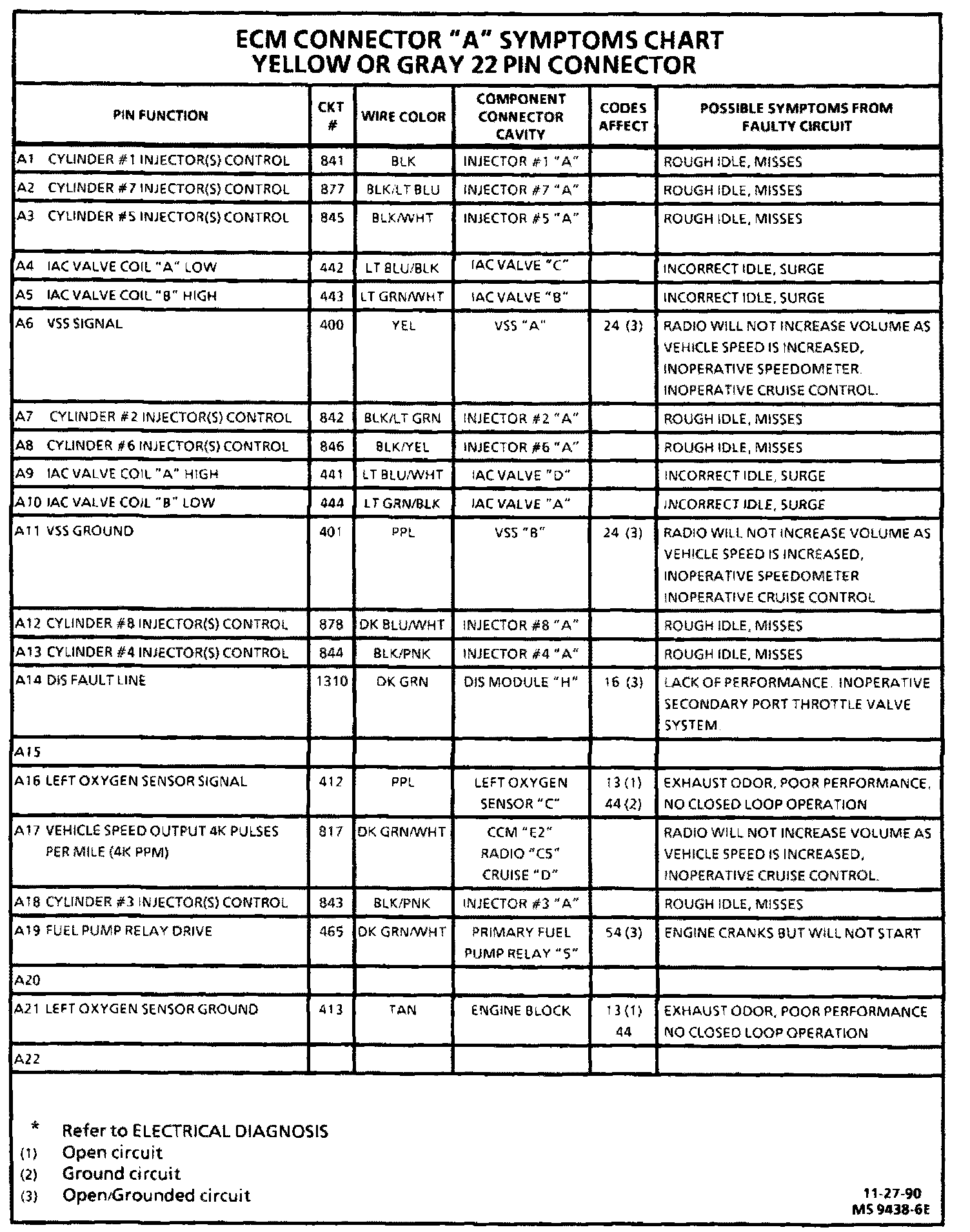 ECM CONNECTOR SYMPTOM CHART