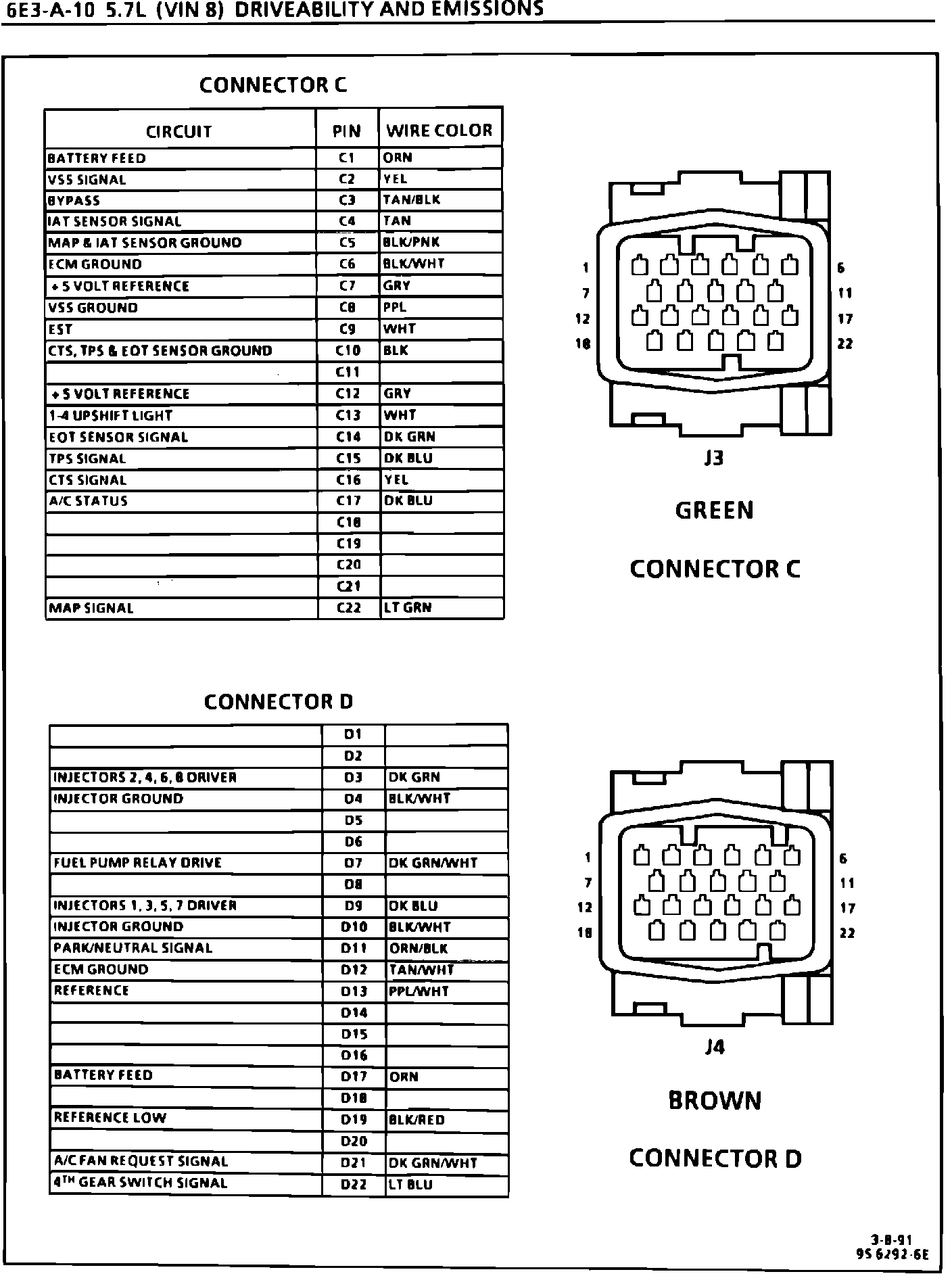 The attached ECM terminal and view chart replaces the chart found in "Driveability And Emissions" Section 6E3 on page 6E3-A-10 of the 1991 "Y" 5.7L (VIN 8) Corvette Service Manual.