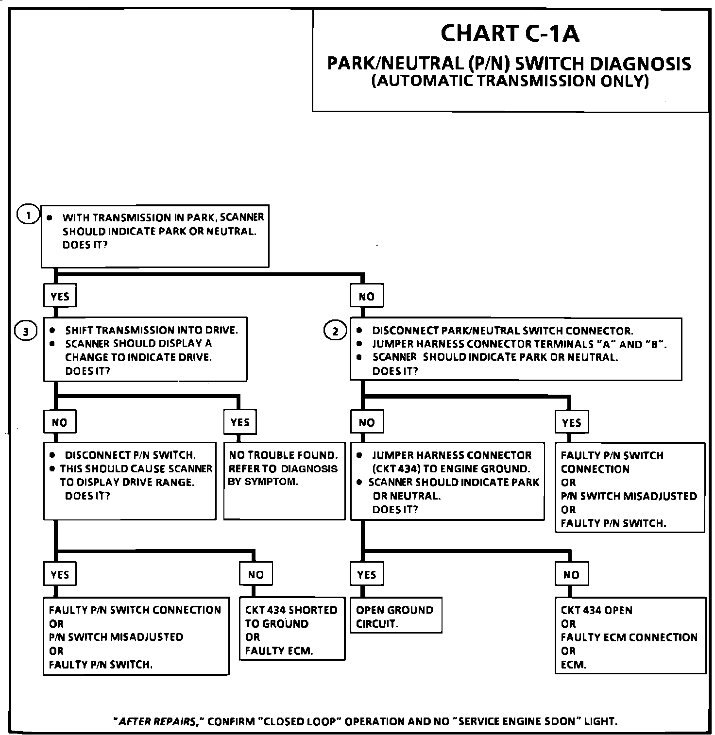 ^ If CKT 434 indicates P/N (grounded), while in drive range, the EGR would be inoperative, resulting in possible detonation.