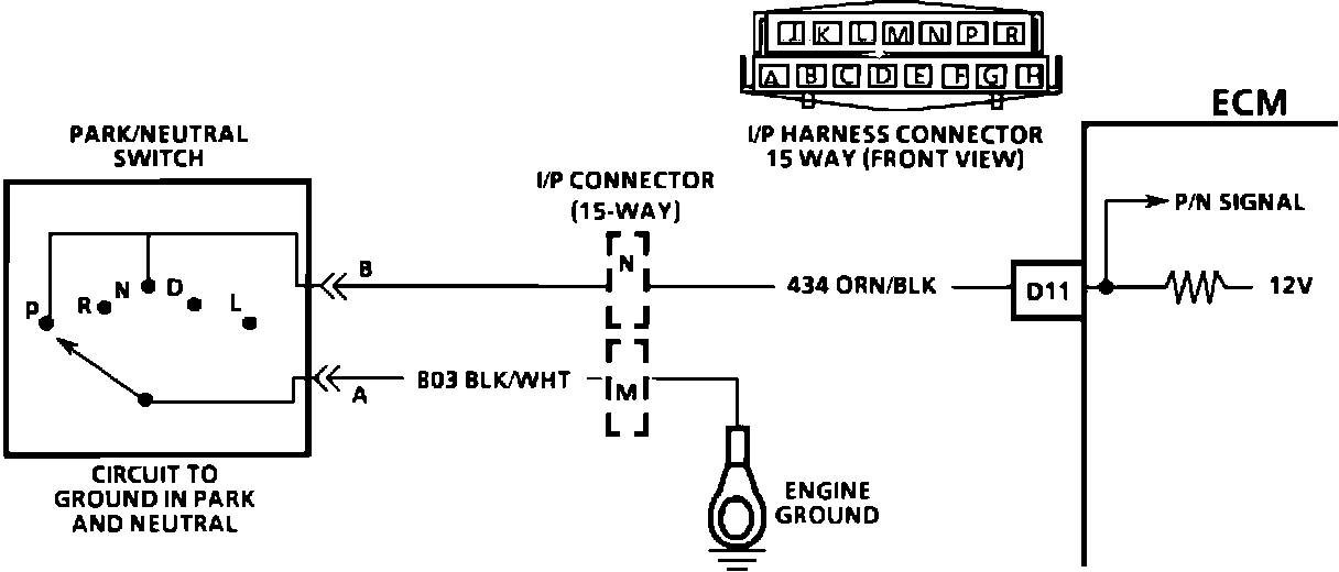 ^ If CKT 434 always indicates drive (open), a drop in the idle may exist when the gear selector is moved into drive range.
